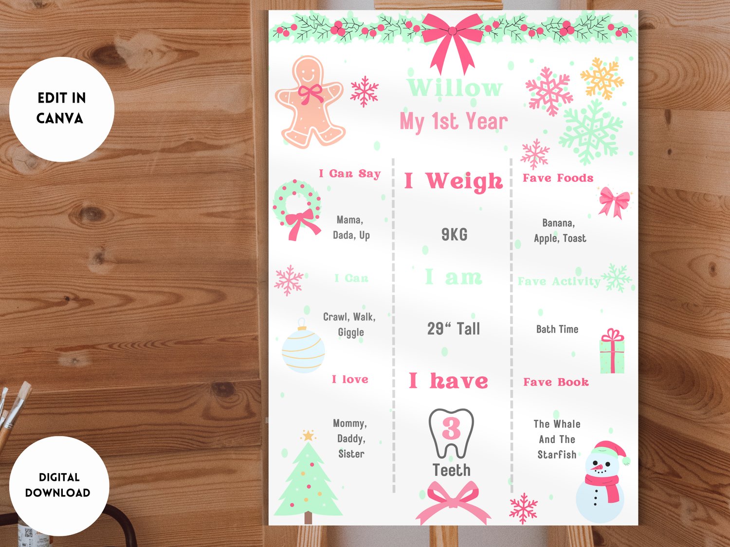 Oh What Fun It Is To Be One First Birthday Milestone Board | Christmas 1st Bday Achievement Sign | Canva Template | Printable Stationery