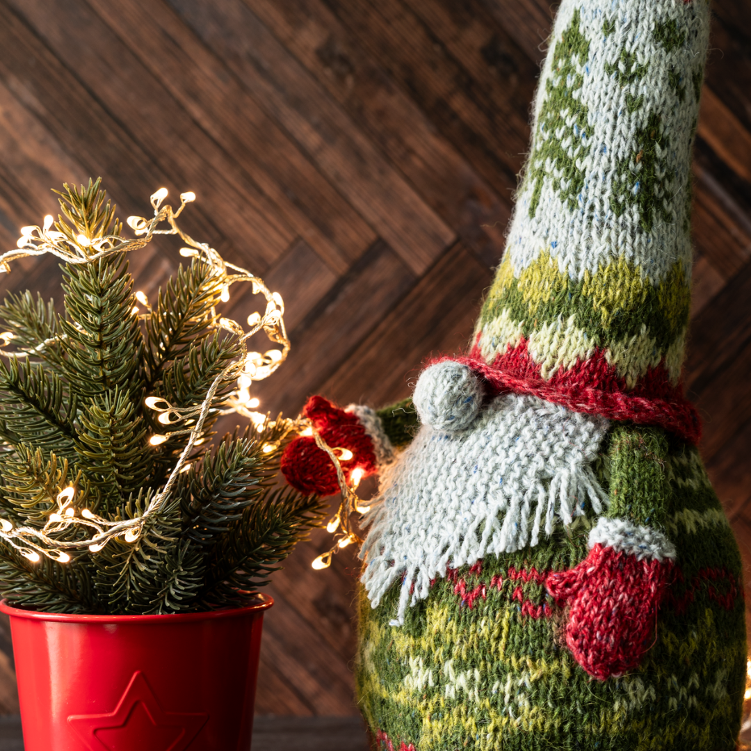A handsome, larger gnome, Gnoel is a great gnome for mantlepieces or porch displays. He’s a great first project for stranded colourwork - after all, wonkiness is gnominess!