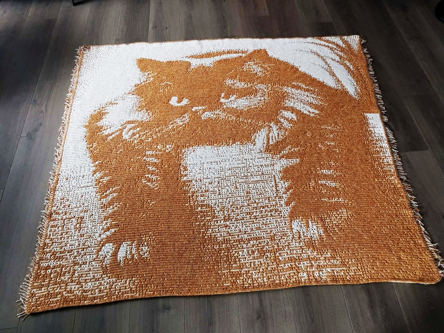Overlay Mosaic crochet blanket, LAZY CAT, written pattern row by row, Big Chart Xs, PDF instant download