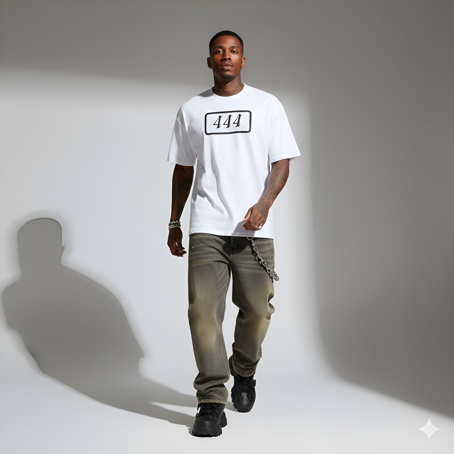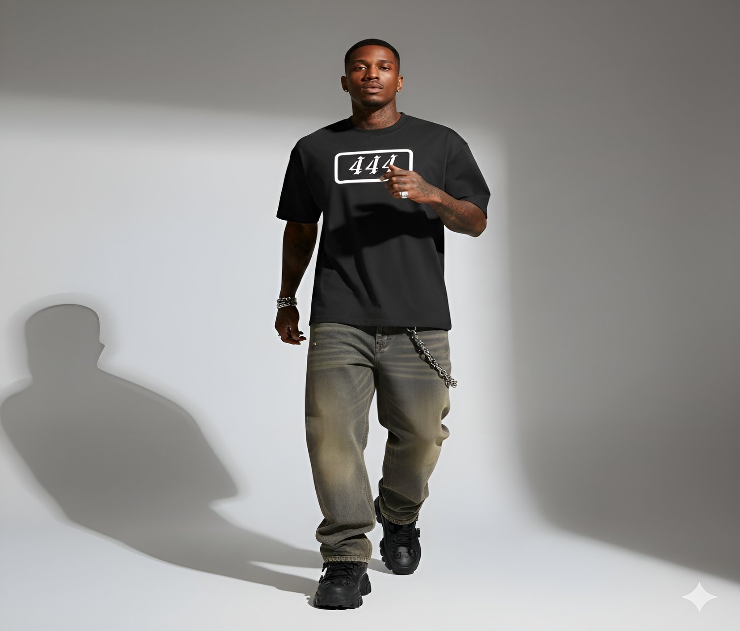 Full size "OG Cone" logo on the back, "444" boxed logo on chest & "CAUTION" message on right sleeve.