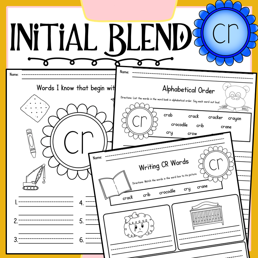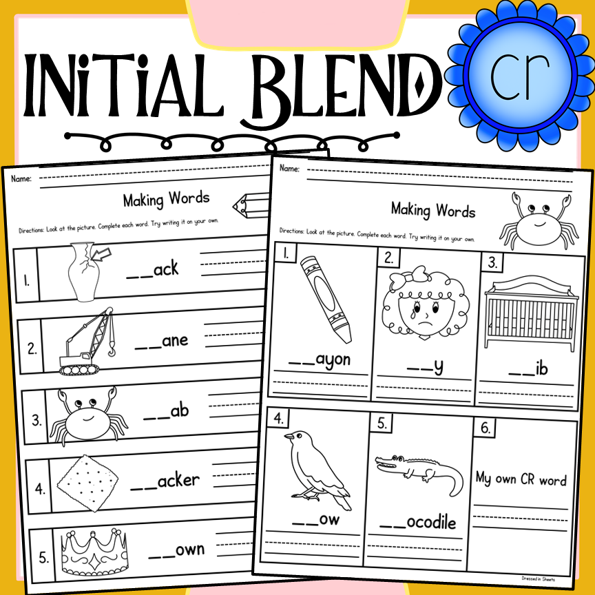 With all the pictures included students will have a visual representation of each blend. Words included: crab, crack, cracker, crane, crayon, crib, crocodile, crow, crown, cry.