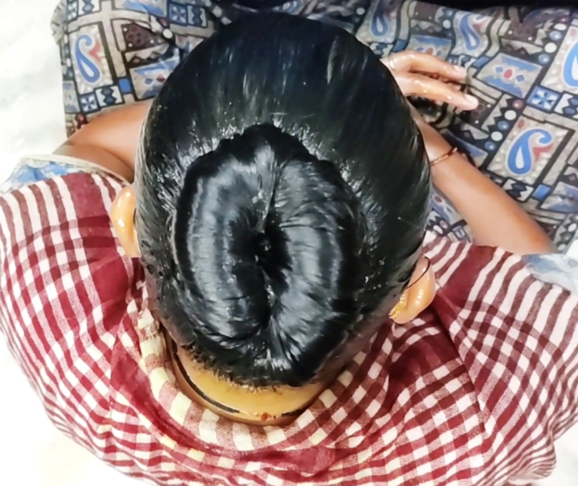 4Litres Heavyoiling+Curd+Henna+Gel first time in #longhair #bun #sleekhair