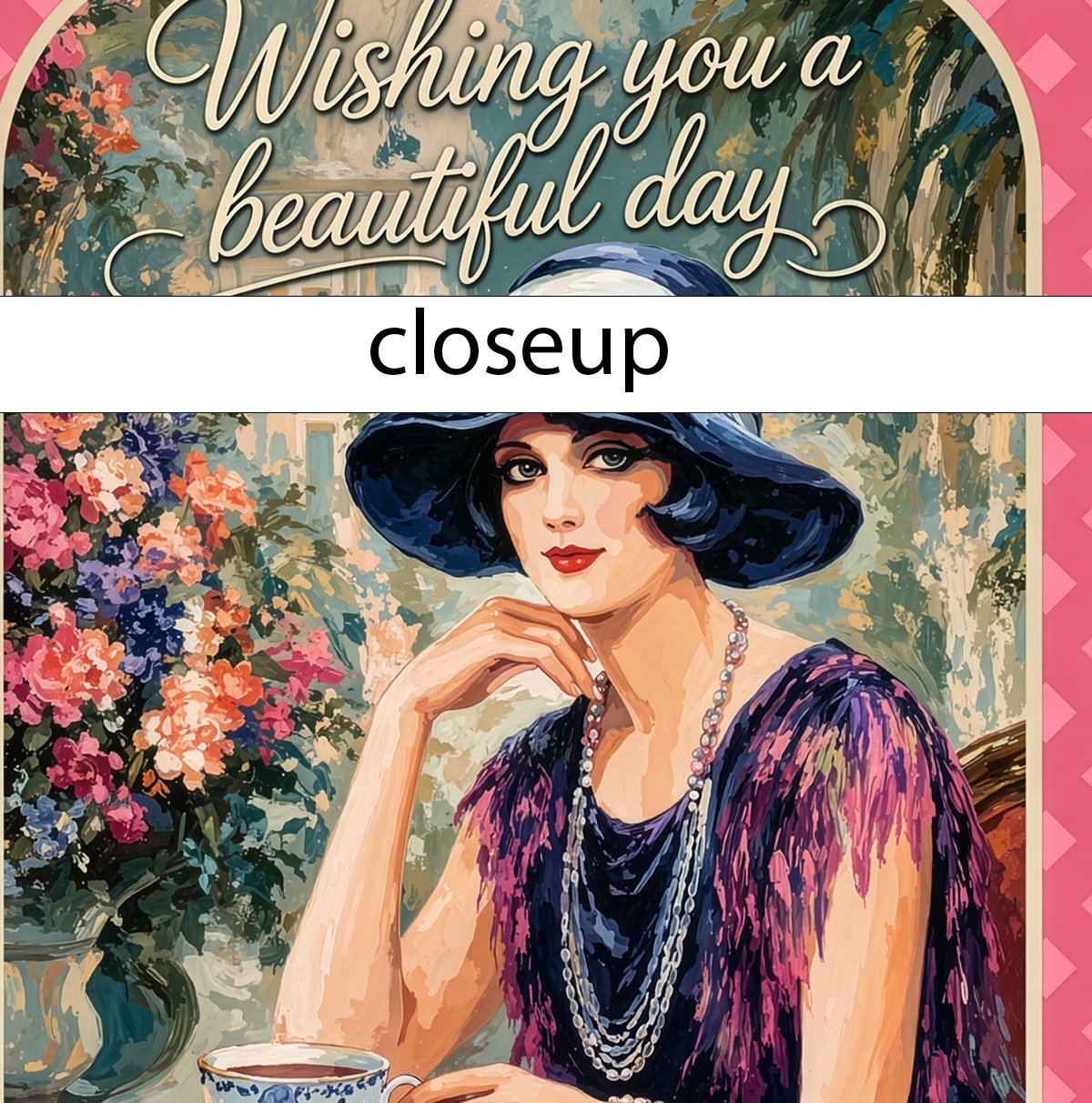 Featuring elegant vintage-style ladies surrounded by rich florals and warm café scenes, each card includes a heartfelt message like “Take a moment for yourself,” “Sending a little sunshine,” and “Wishing you a beautiful day.” This set is ideal for encouragement, friendship, or simply brightening someone’s day with a personal touch.