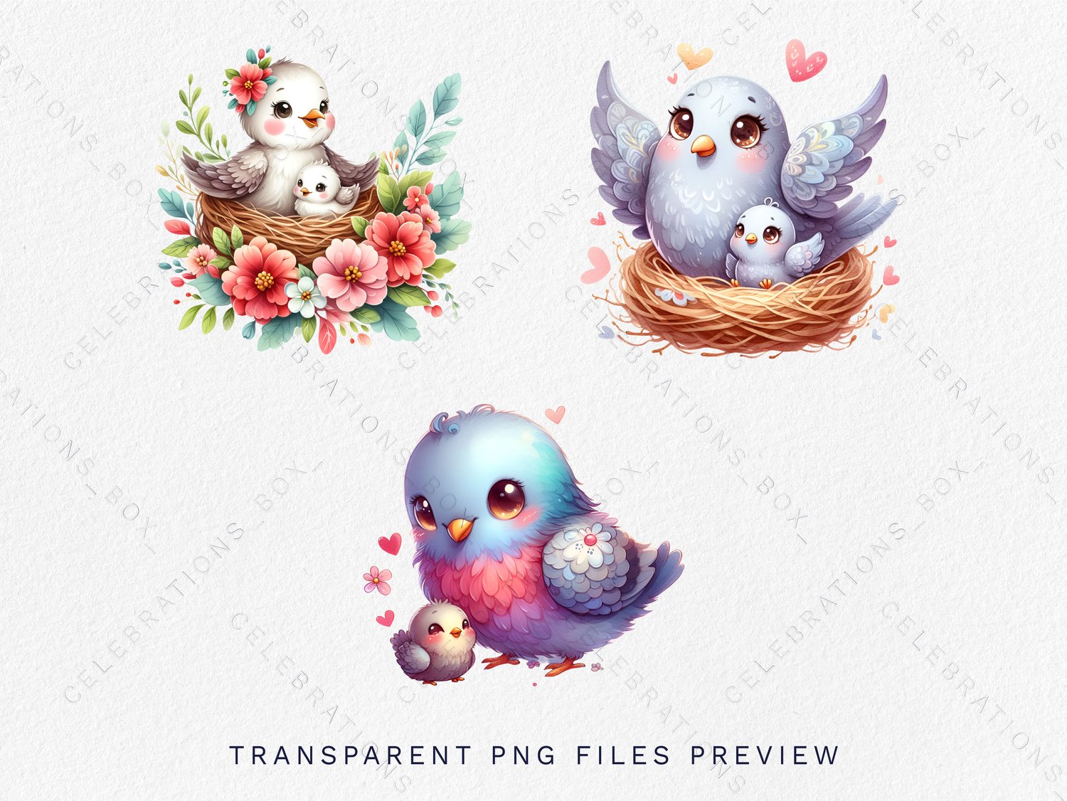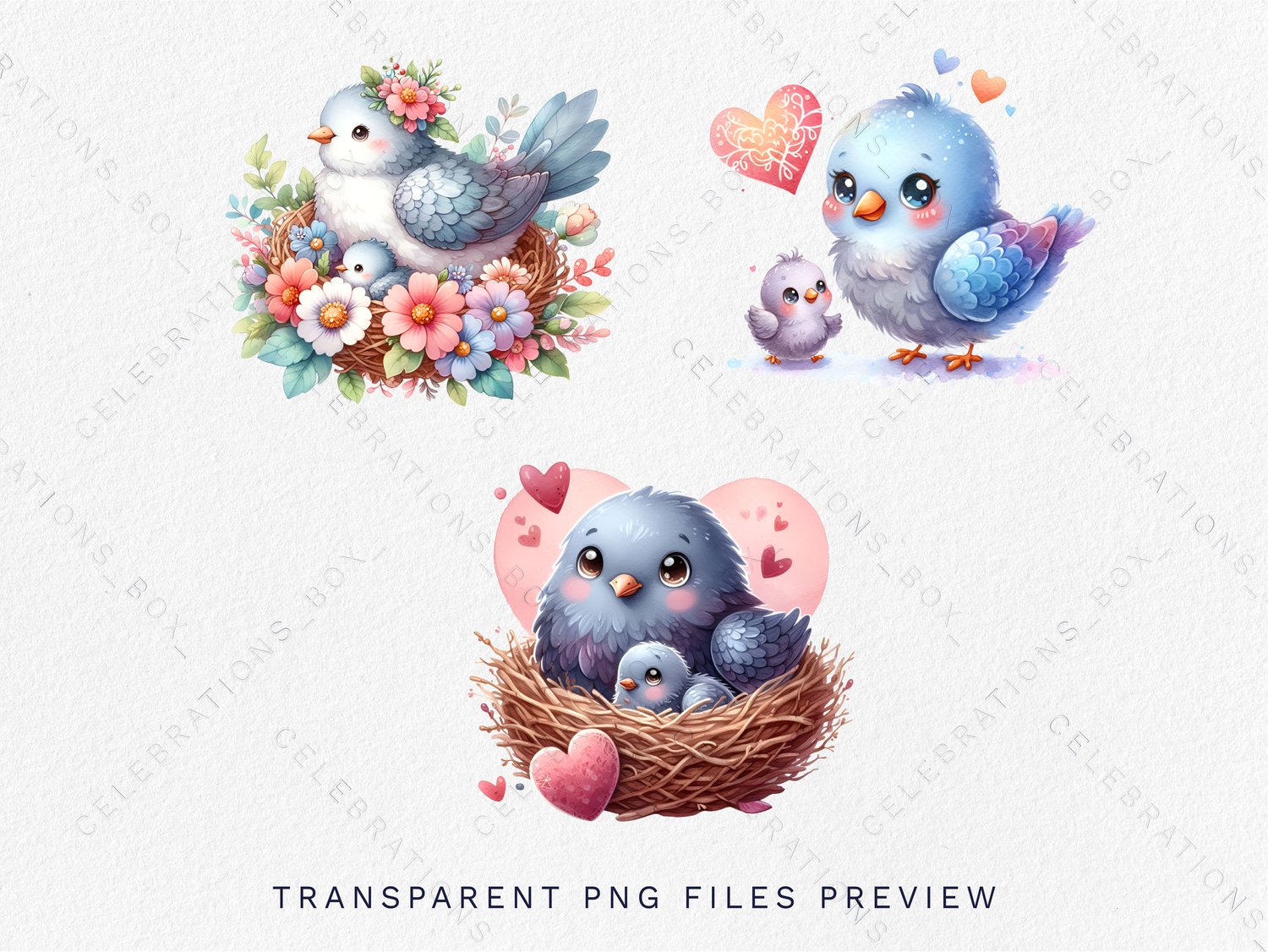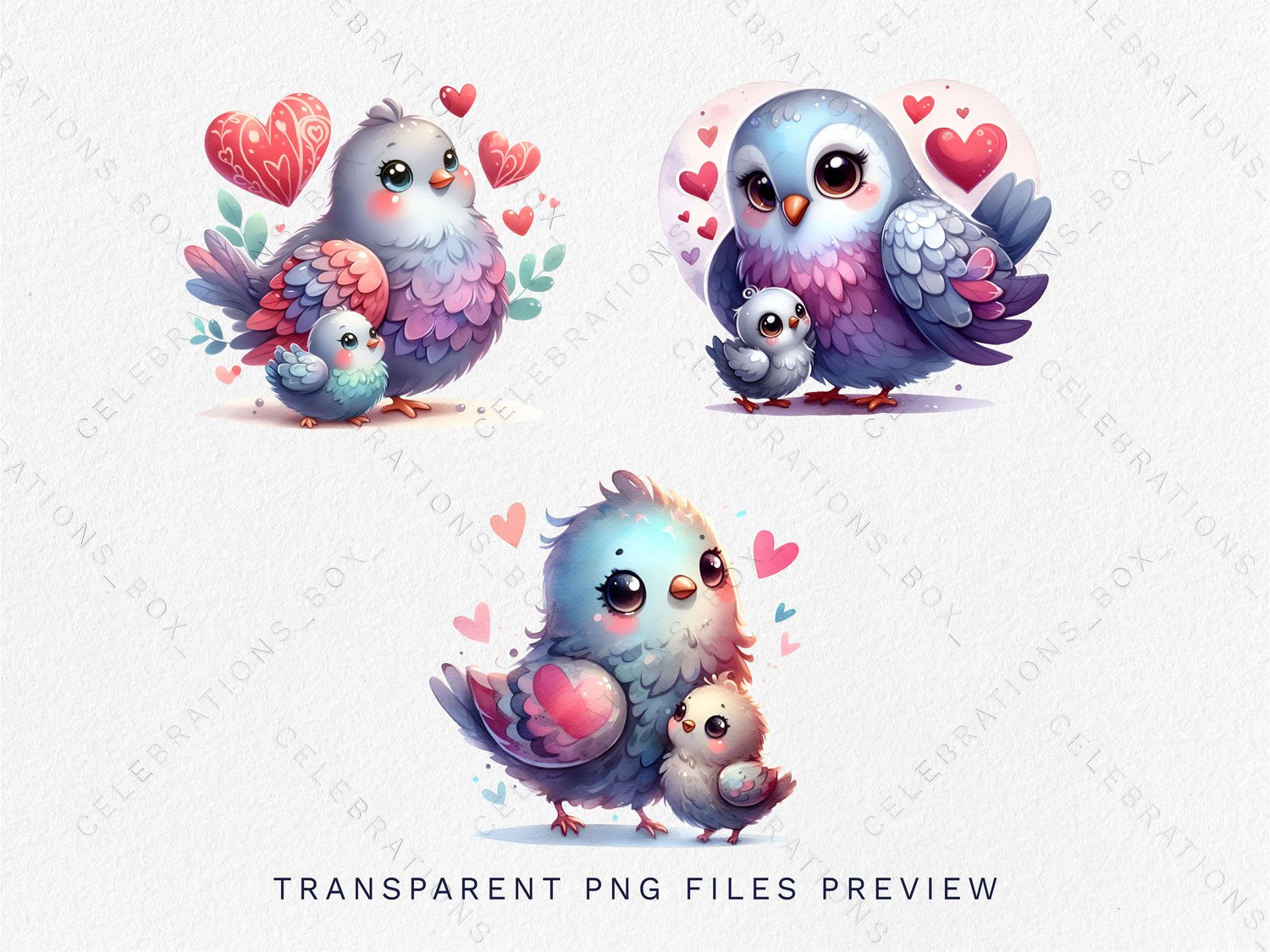 Watercolor Pigeon Mom And Baby Clipart Bundle