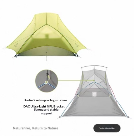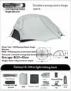 Featuring a double-Y supporting structure and high-strength aluminum alloy poles, this tent provides excellent stability in wind while maintaining a minimal packed weight. The 15D ripstop nylon construction with silicone coating enhances water resistance and durability, making it suitable for varied terrain and changing weather conditions.
