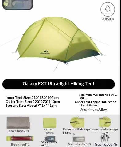 - 1 × Naturehike Galaxy EXT Hiking Tent