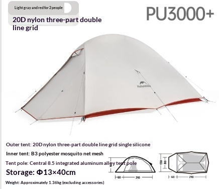 - Outer Tent: 15D Tear-Resistant Fine Grid Nylon (Single Silicone)