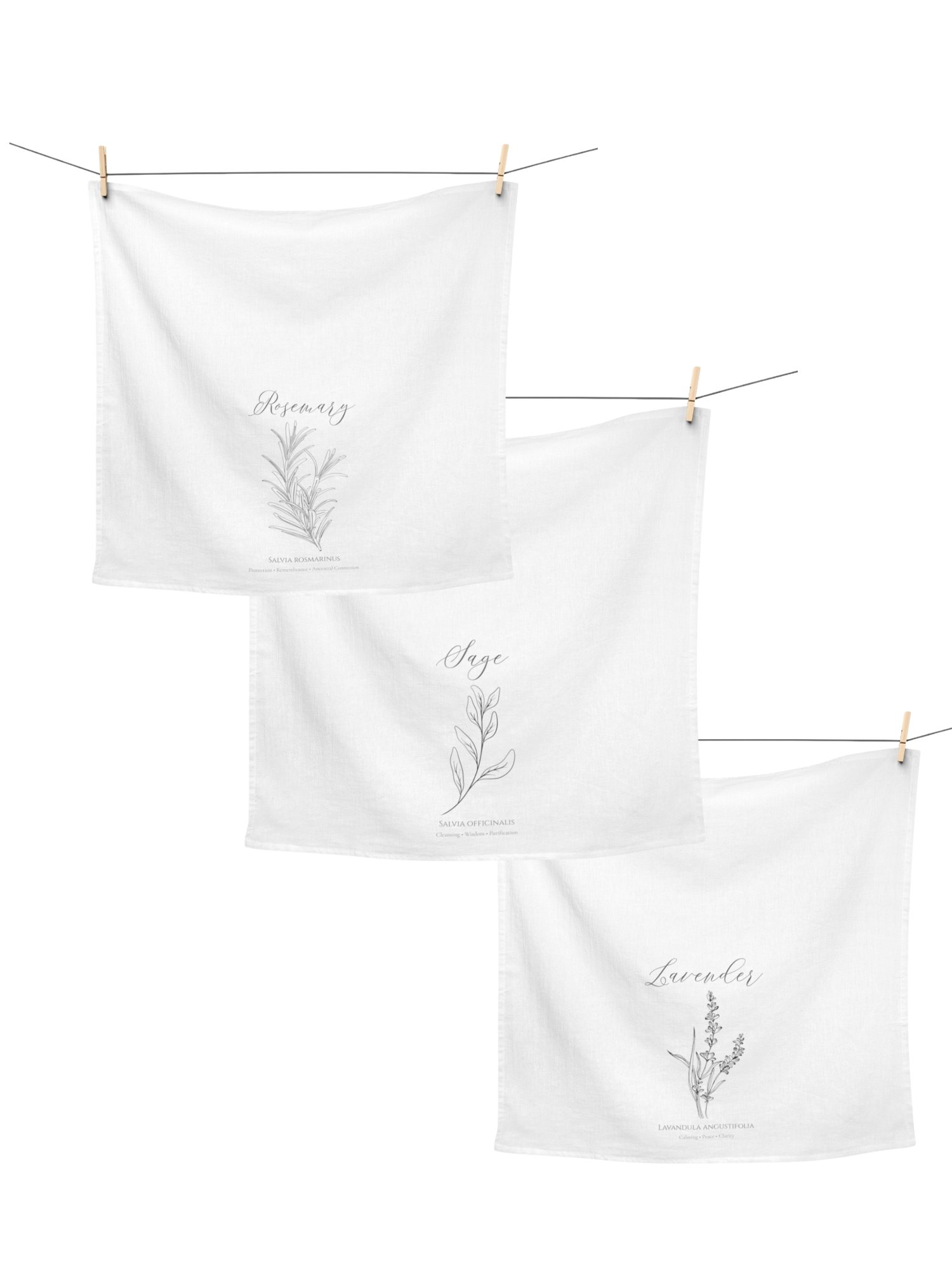 This curated set includes all three of my botanical tea towel designs: Sage, Rosemary, and Lavender.