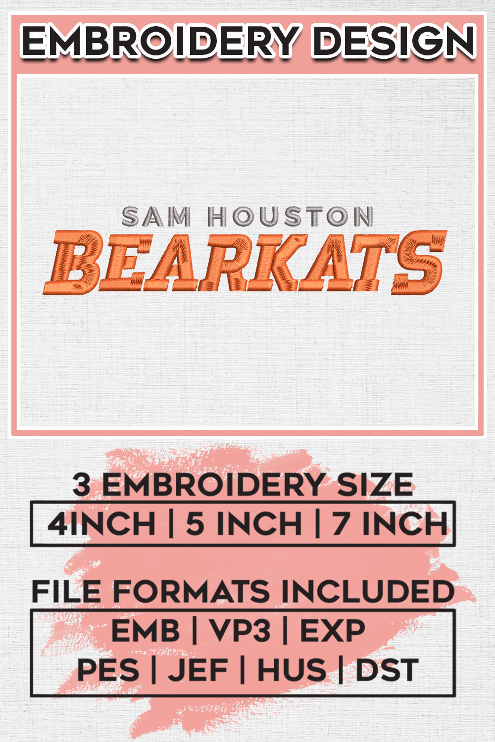 Sam Houston Bearkats Wordmark Embroidery Designs, NCAA Sam Houston Bearkats Machine Embroidery Designs, NCAA Logo Machine embroidery designs, Ncaa Bearkats Logo, Digital Download