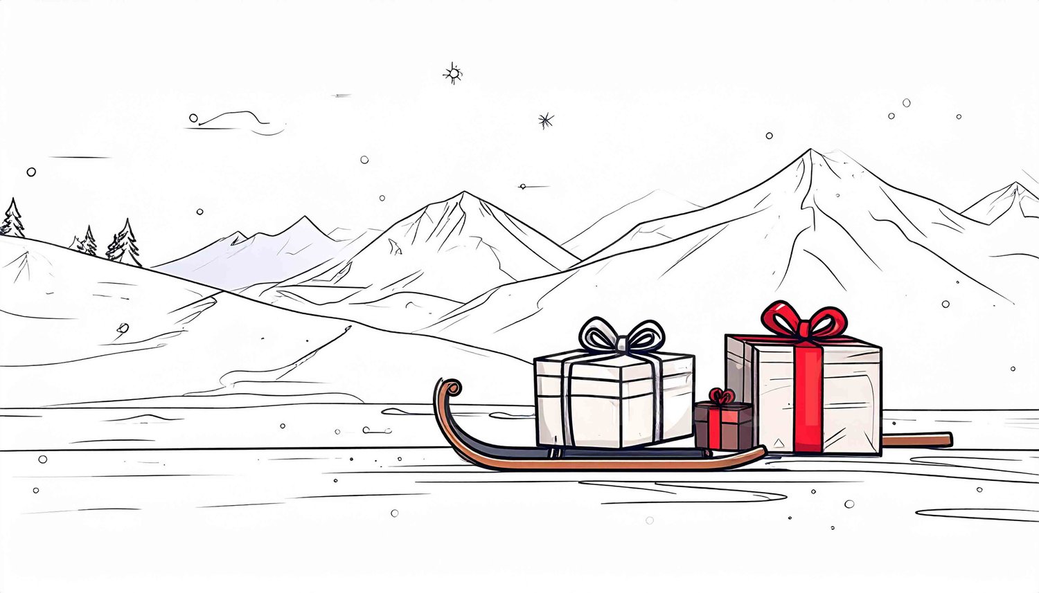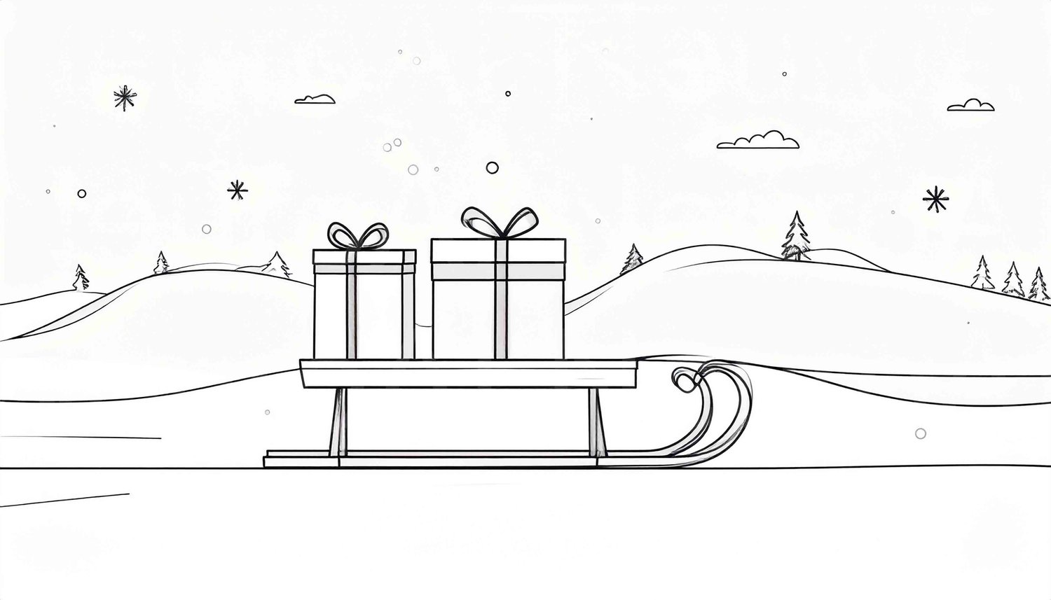 Winter gifts on sleigh, festive scenic landscape