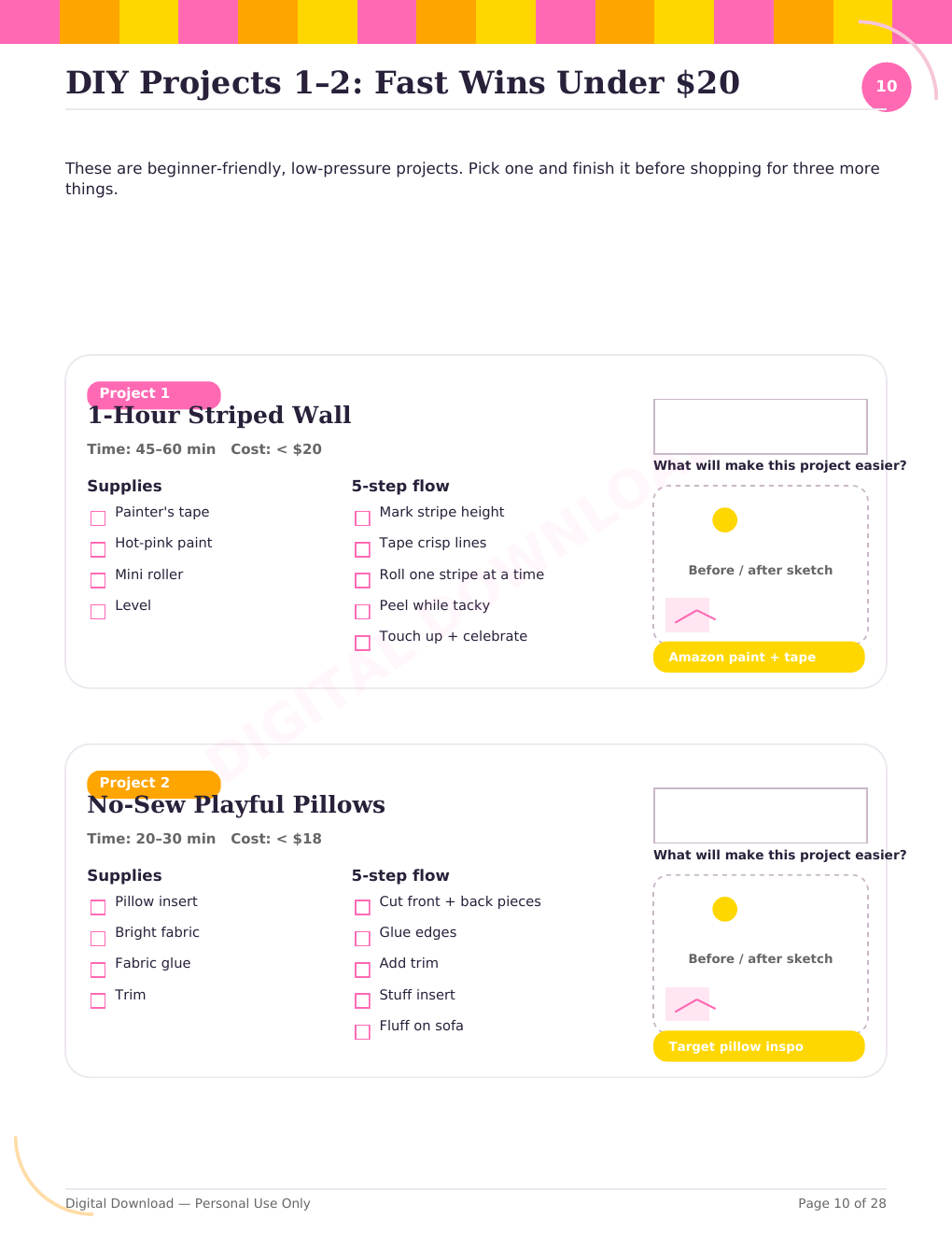 This planner is perfect for women who love Pinterest, home decor, colorful interiors, DIY styling, and budget-friendly room updates. It’s especially helpful if you want your home to feel more joyful, more creative, and more like you — without turning the process into a stressful full renovation.
