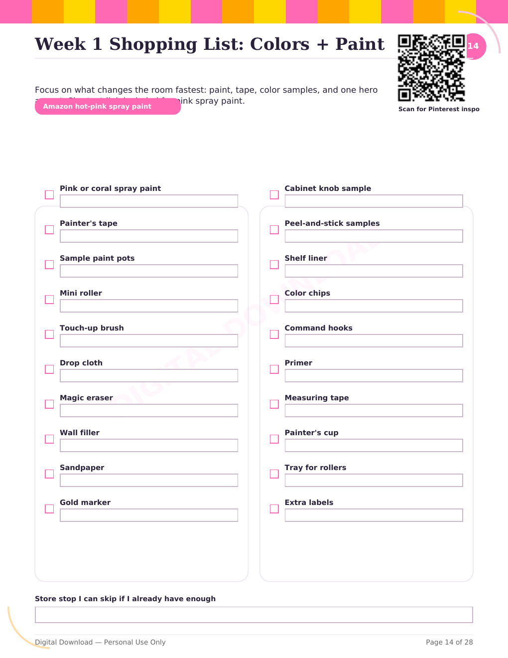 30-Day Room Refresh Planner for Women | Colorful DIY Home Decor Workbook, Budget Makeover Guide & Printable