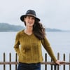 Hudson + West Co. Forge (70% U.S. Merino / 30% U.S. Corriedale; 235 yds / 215 m; 3.5 oz / 100 g): gold leaf (green-yellow), 5 (5, 6, 6, 7, 8, 9, 9, 10, 11) skeins.Needles
