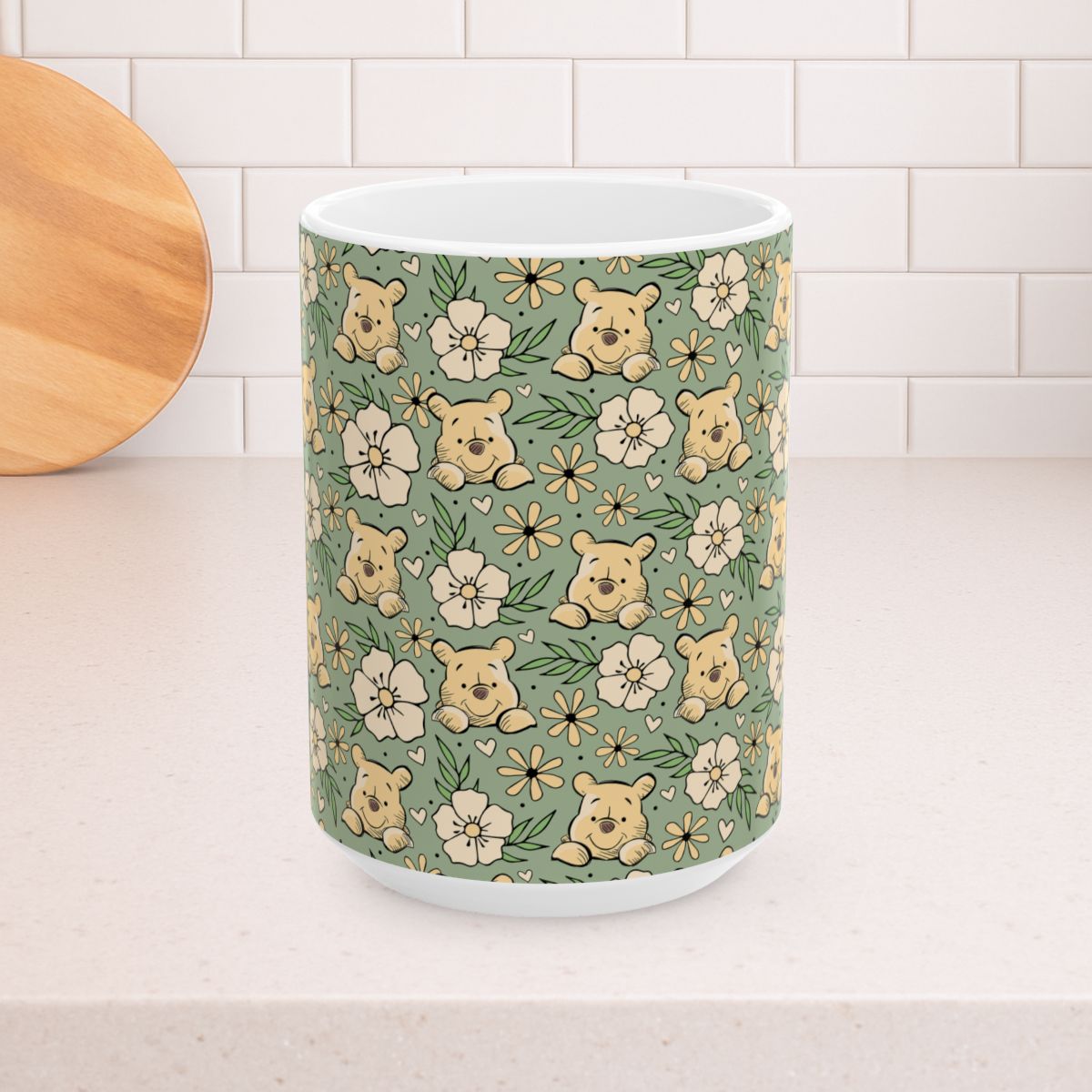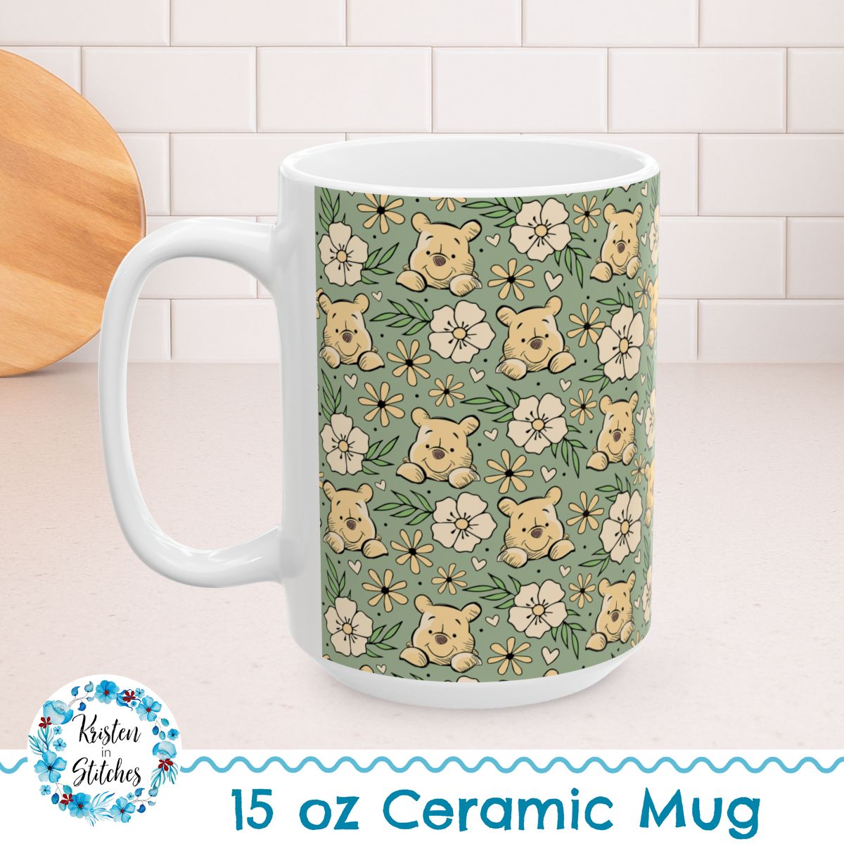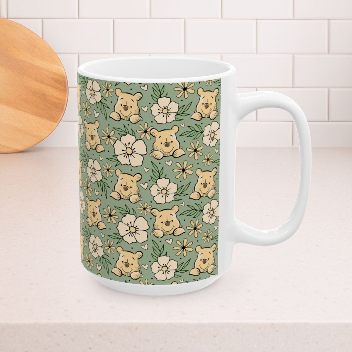 Pooh Floral 15oz Ceramic Mug, Large Coffee Cup, Classic Winnie the Pooh Bear
