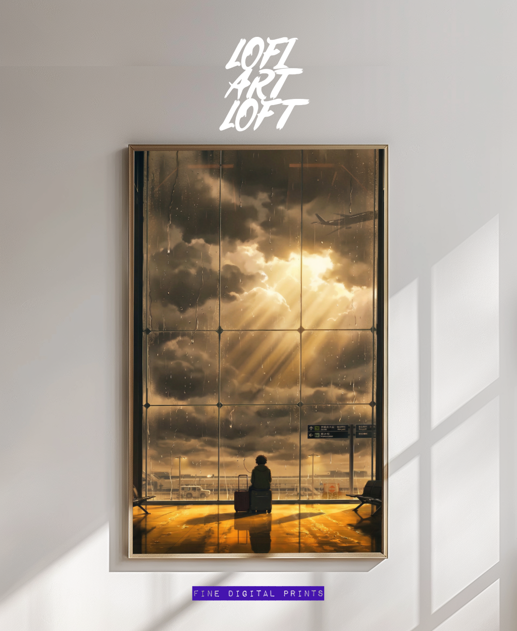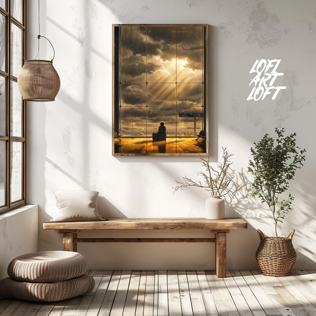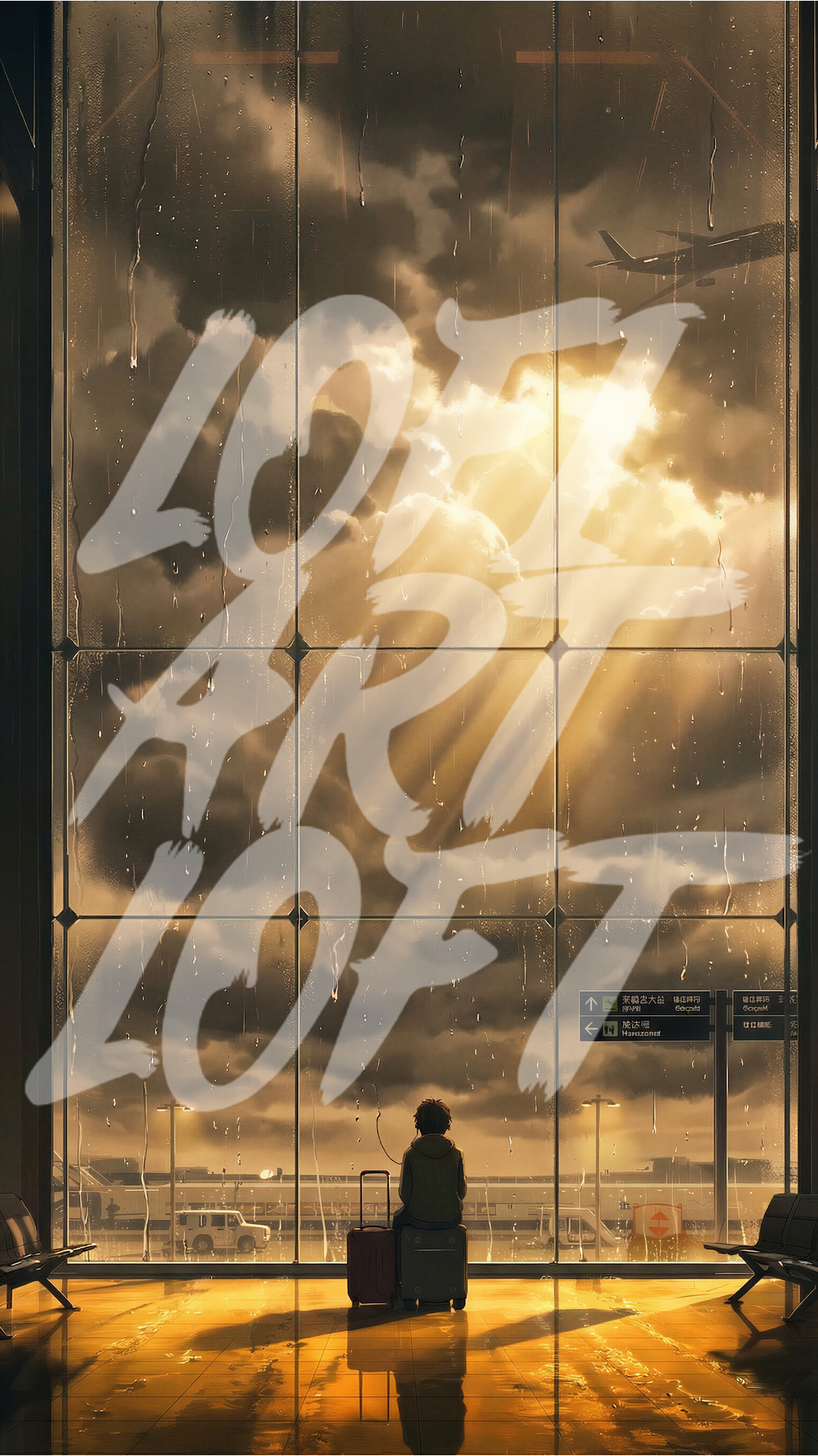 Airport Sunset - UHQ Digital Lofi Anime Art Print | #46
