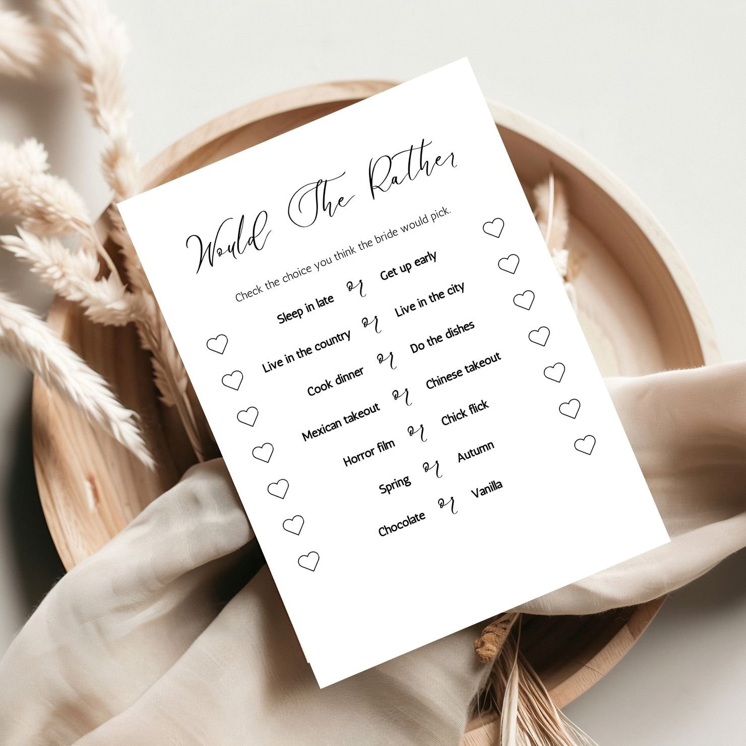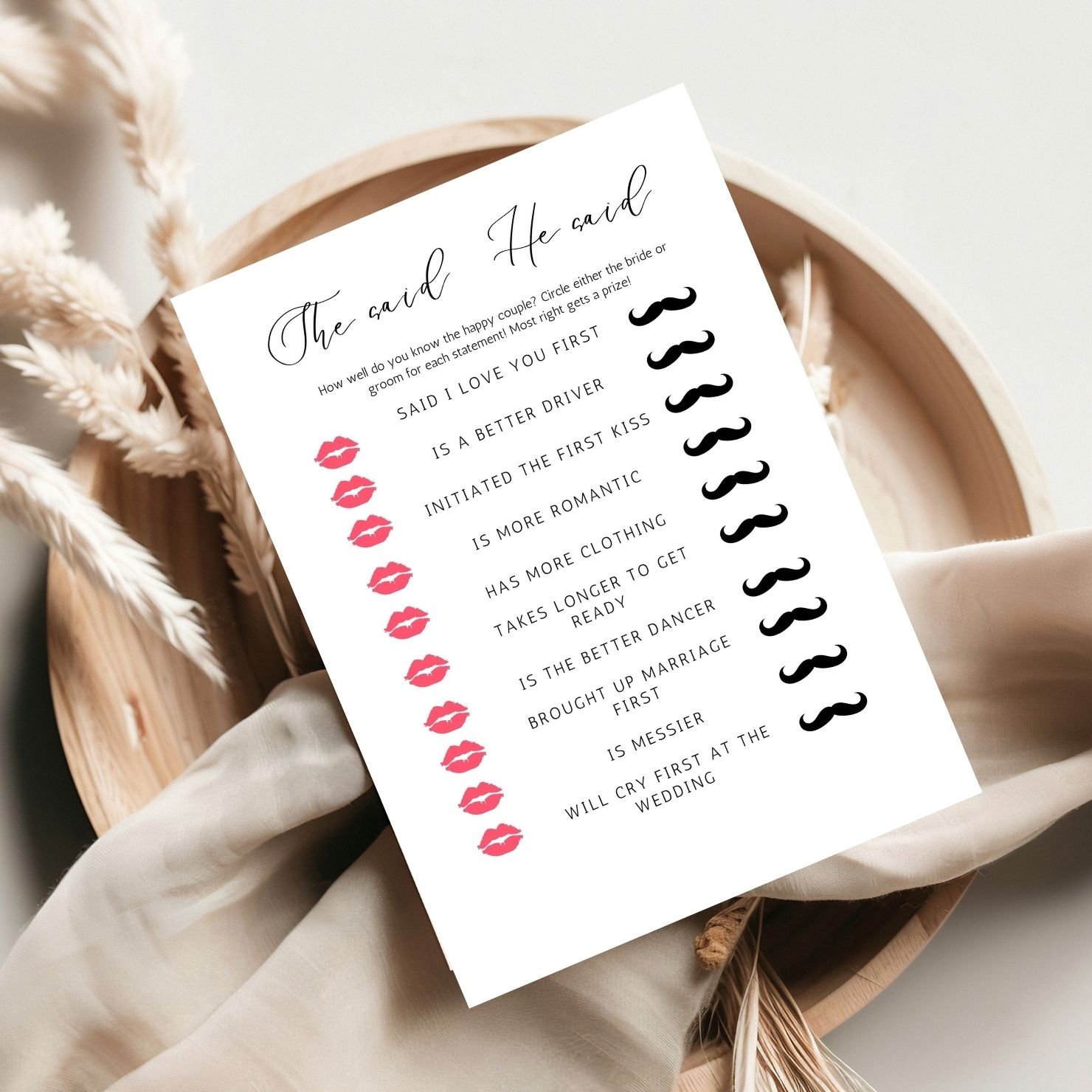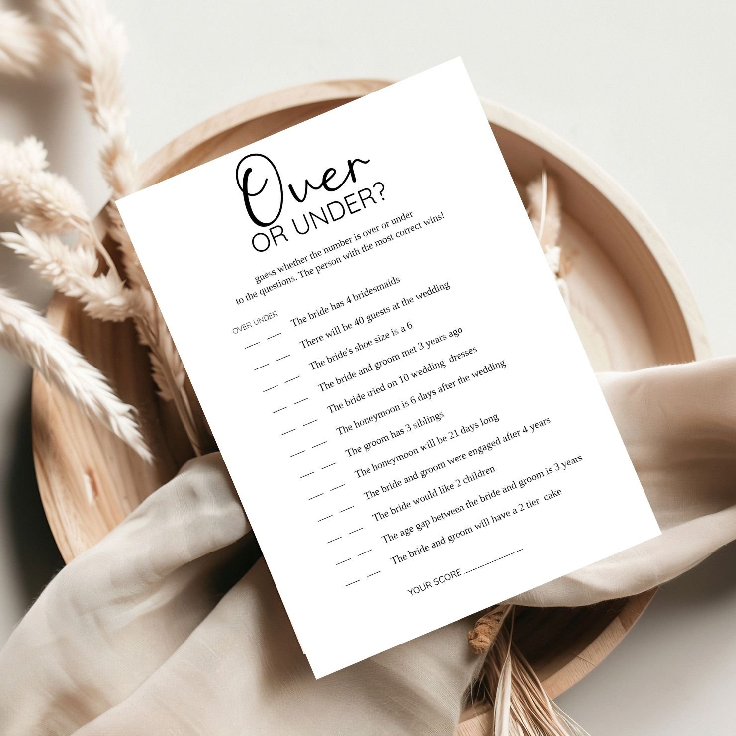 Elevate your wedding reception with our Modern Minimalist Wedding Games Card – the perfect addition to an elegant, contemporary celebration. Designed with sleek lines and a clean, minimalist aesthetic, this game card effortlessly blends with any modern decor, making it a stylish yet fun way to entertain guests. The card offers engaging games like Wedding Bingo, Find the Guest, guess who, he said she said, encouraging interaction and laughter among friends and family. Printed on premium-quality cardstock with a choice of classic monochrome or soft neutral tones, this game card adds a refined touch to your event, creating unforgettable moments that your guests will cherish.