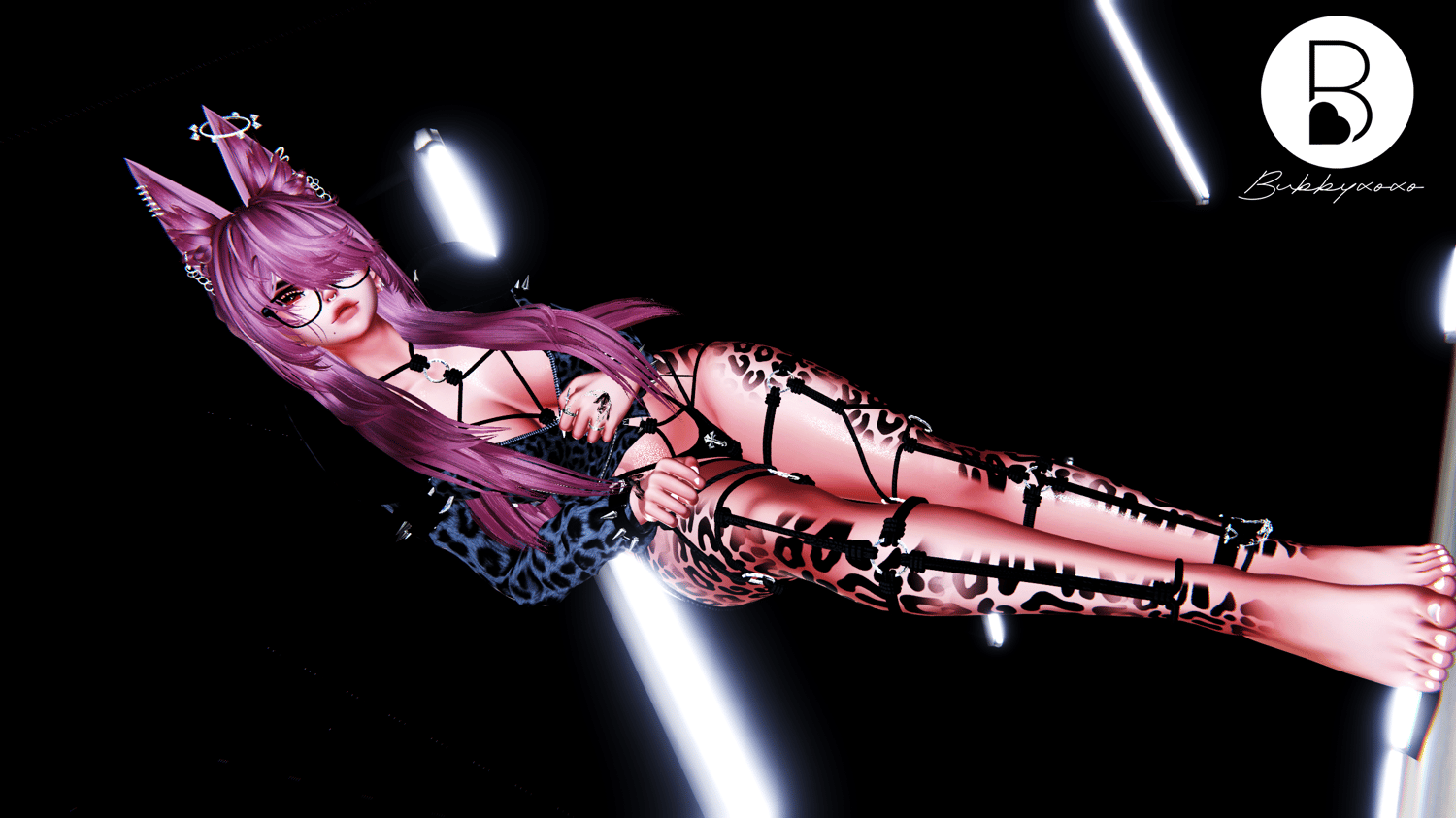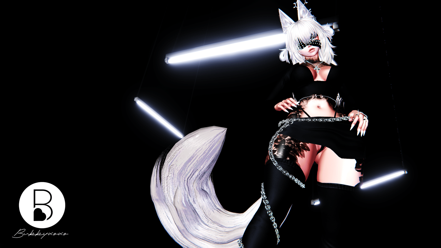 Head (sculpted by Bubbyxoxo), Body (with edits made by Bubbyxoxo),ย Pole & Chair, Blindfold (Edits done by CaliTrap), Anklet, Glasses(rigged by Bubbyxoxo), Big Hoodie, Pigtails, Long Hair, Halfup Hair, Spikey Hair, Turtleneck, Legchain, Mini Skirt, TShirt, Chain Harness, Sweats, Ear Hoodie, Sports Bra, Necklace, Heels, Bodysuit, Longsleeve, Bun Hair, Undies, Sleeves, Shorts, Zipup, Frilly Skirt, Tail, Ears (no longer available),Waist Chain, Rope, Tanktop, Croptop, Ryu Tattoo Texture (other tattoos done by Bubbyxoxo), Makeup Texture by Bubbyxoxo, Icons by Bubbyxoxo, Eye Texture, Handchains