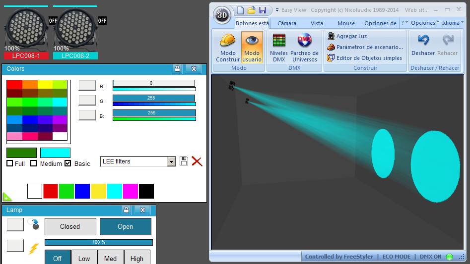 Esta Librería SSL2 está optimizada para trabajar con Magic 3d Easy View. Es decir para ver una representación 3D de las secuencias que estemos realizando con Freestyler, QLC+ o cualquier otro soft que se conecte con Magic 3d.