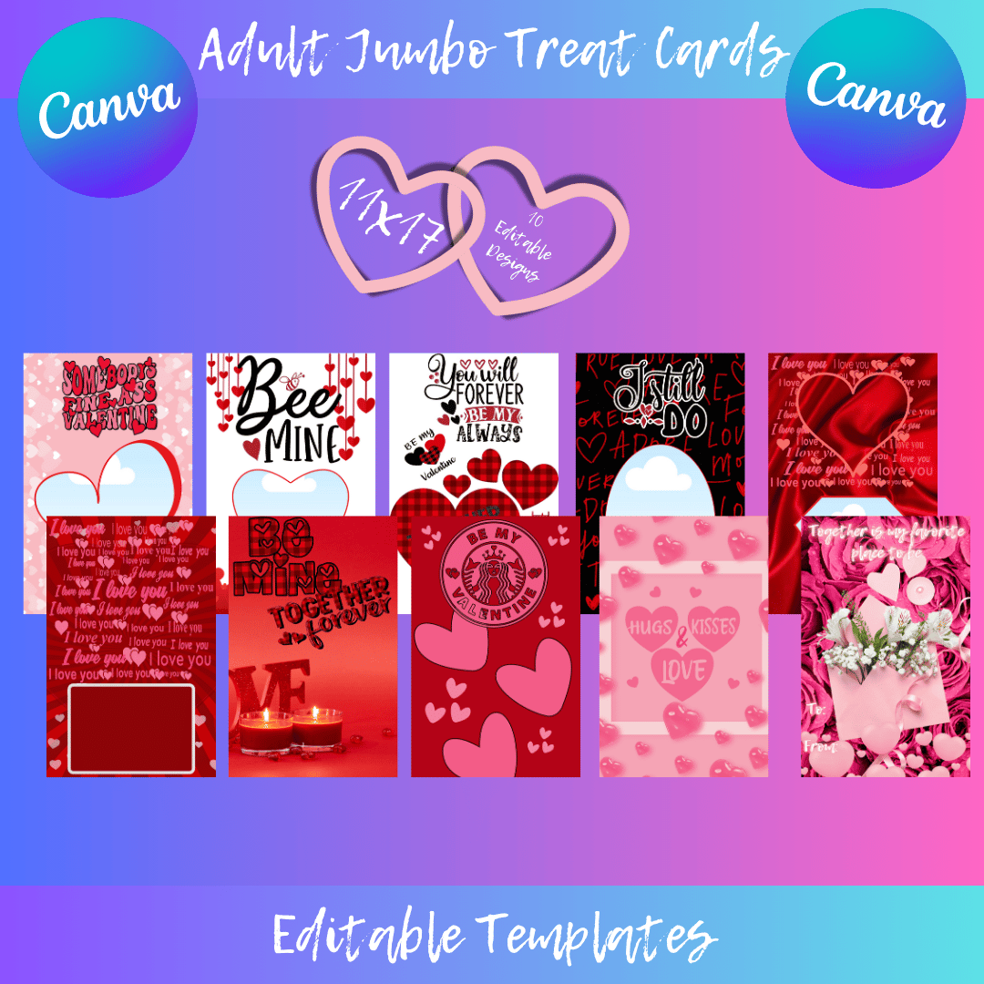 Celebrate love and laughter this Valentine’s Day with our Editable Adult Jumbo Treat Cards! Perfect for gifting sweet treats or party favors, these oversized cards are designed to add a personal and playful touch to your Valentine’s celebration. Fully customizable in Canva, you can edit the text, colors, and graphics to create a heartfelt and unique design.