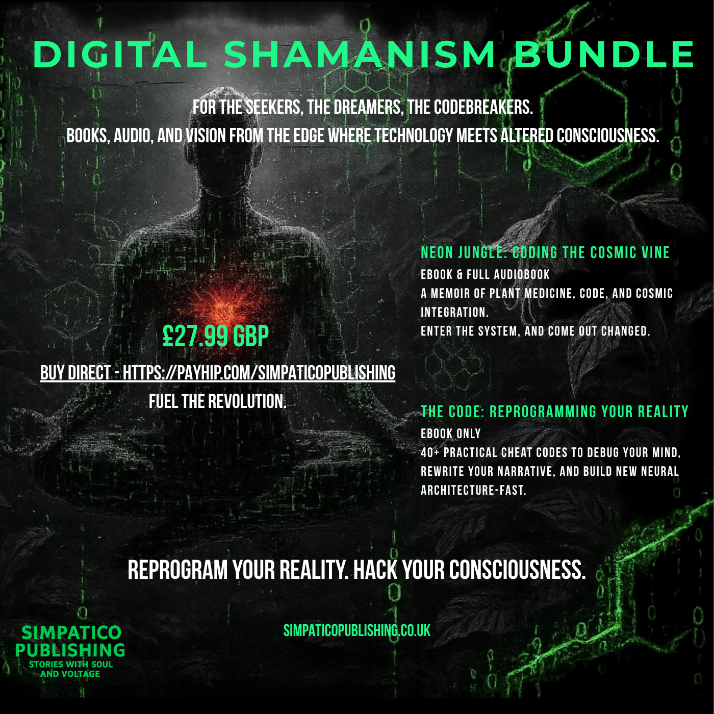 Unlock the future of your mind with Simpatico Publishing’s Digital Shamanism Bundle — a reality-shifting toolkit that blends plant medicine, practical neuroscience, and conscious tech.