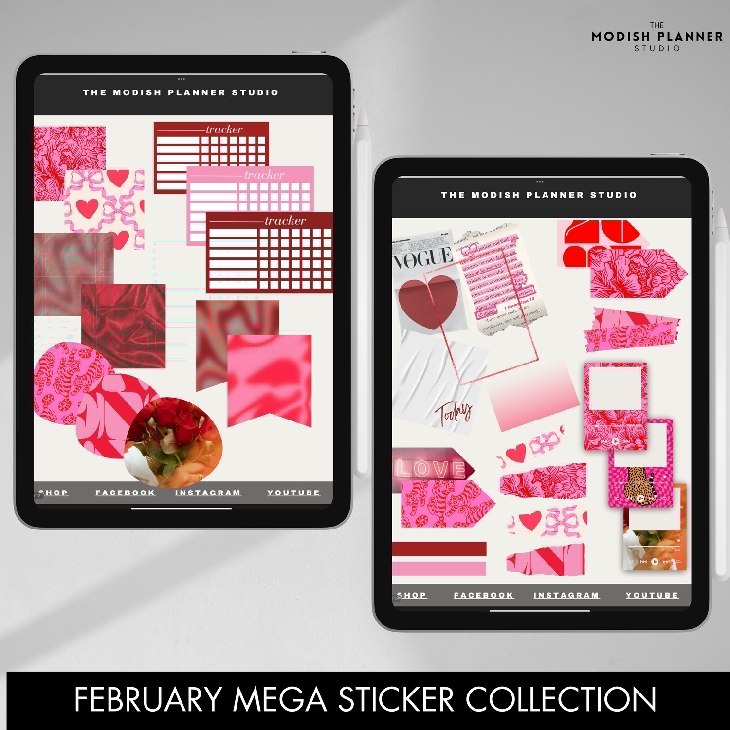 Elevate your digital planning experience with our February Mega Digital Sticker Collection! Delivered as a convenient GoodNotes file with a stylish cover/divider and individual PNGs, these stickers are instantly downloadable, ensuring quick access to enhance your planning creativity. Please note that this is a digital product, and no physical items will be shipped.