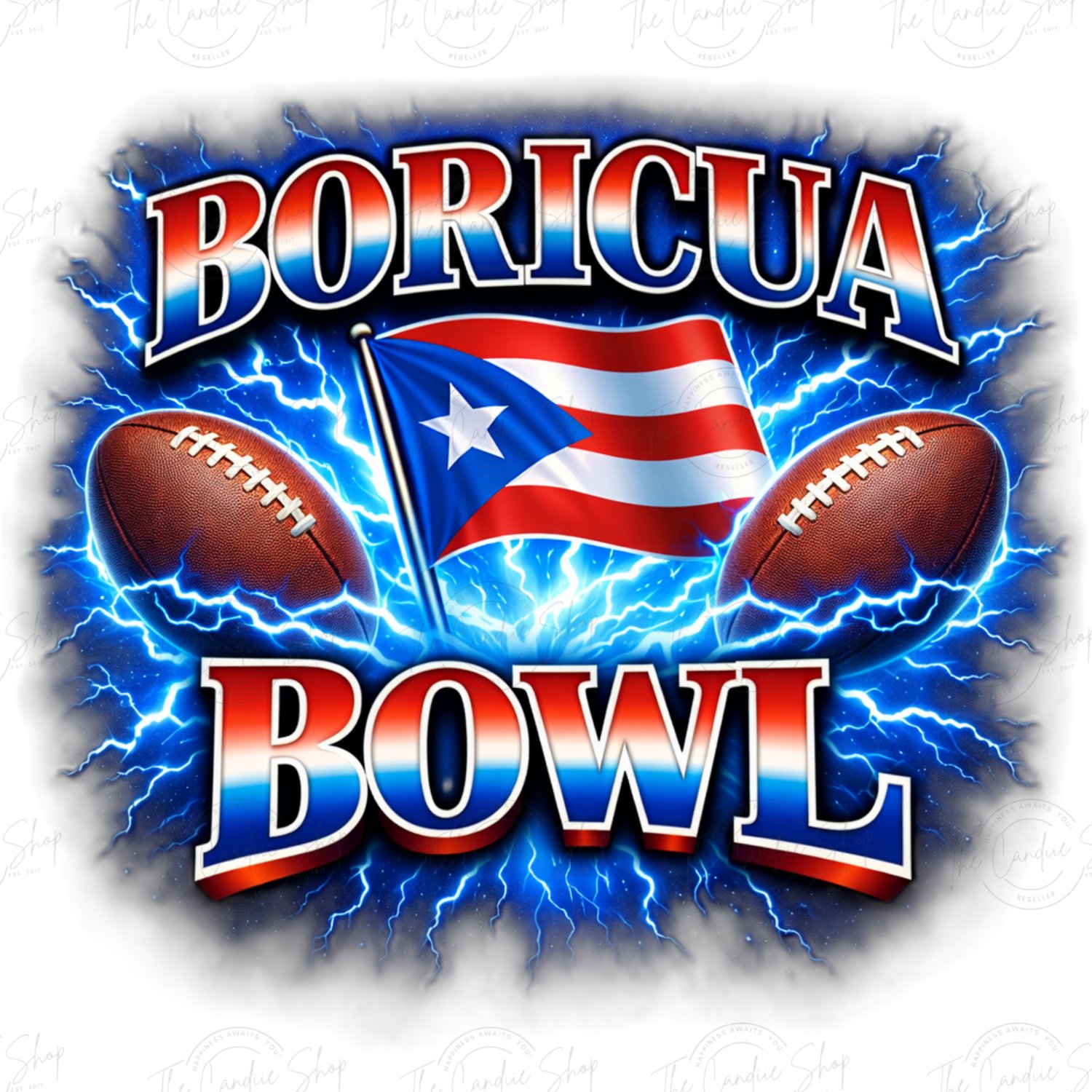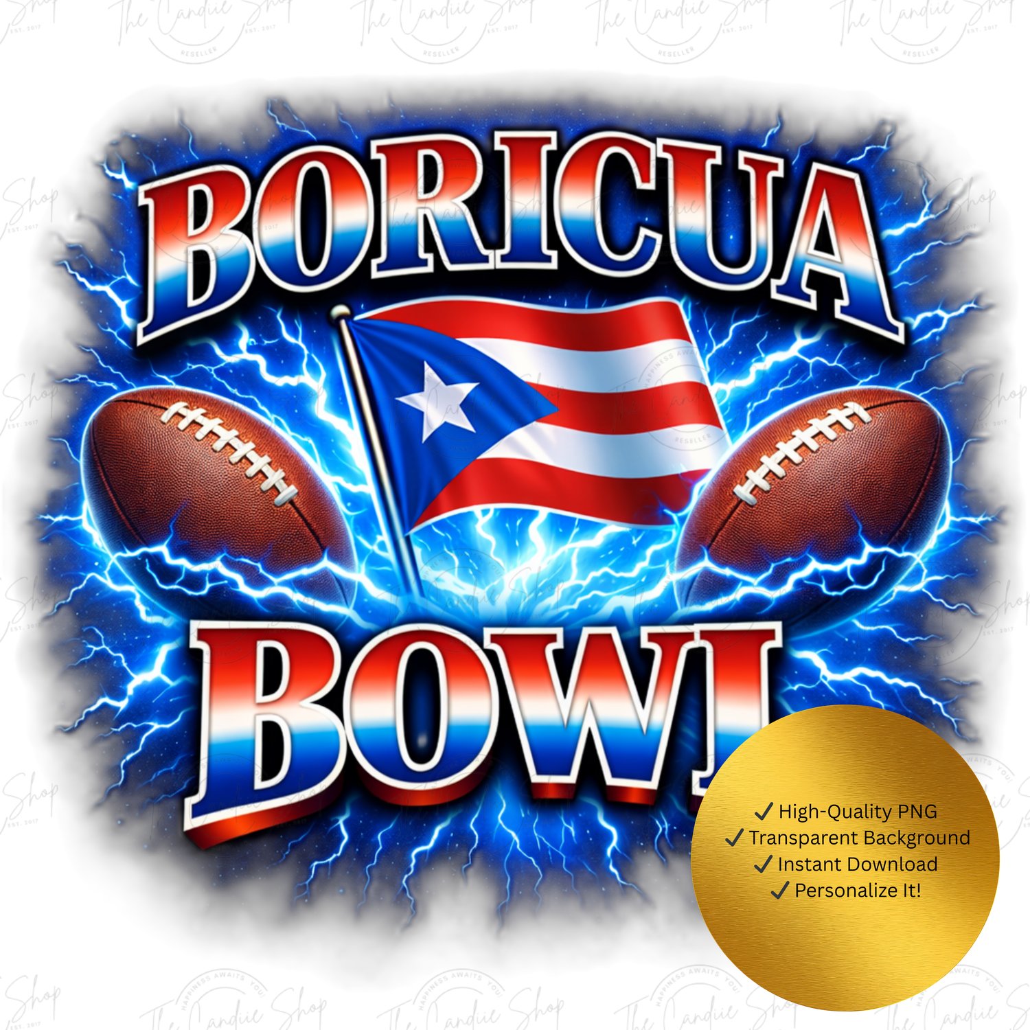 Show off your Boricua pride with this bold football-themed “Boricua Bowl” PNG featuring a Puerto Rico flag vibe and high-energy sports style—perfect for game day crafts, fan gear, and spirited DIY projects.