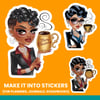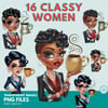 ✅ 16 Unique PNG Images – Beautiful, chibi-style illustrations featuring classy, sophisticated women ☕