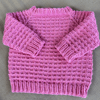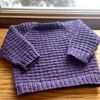 Although this is designed for two yarns held together, it can be knit with DK weight yarn. There are 8 sizes: 3 months to 8/9 years.