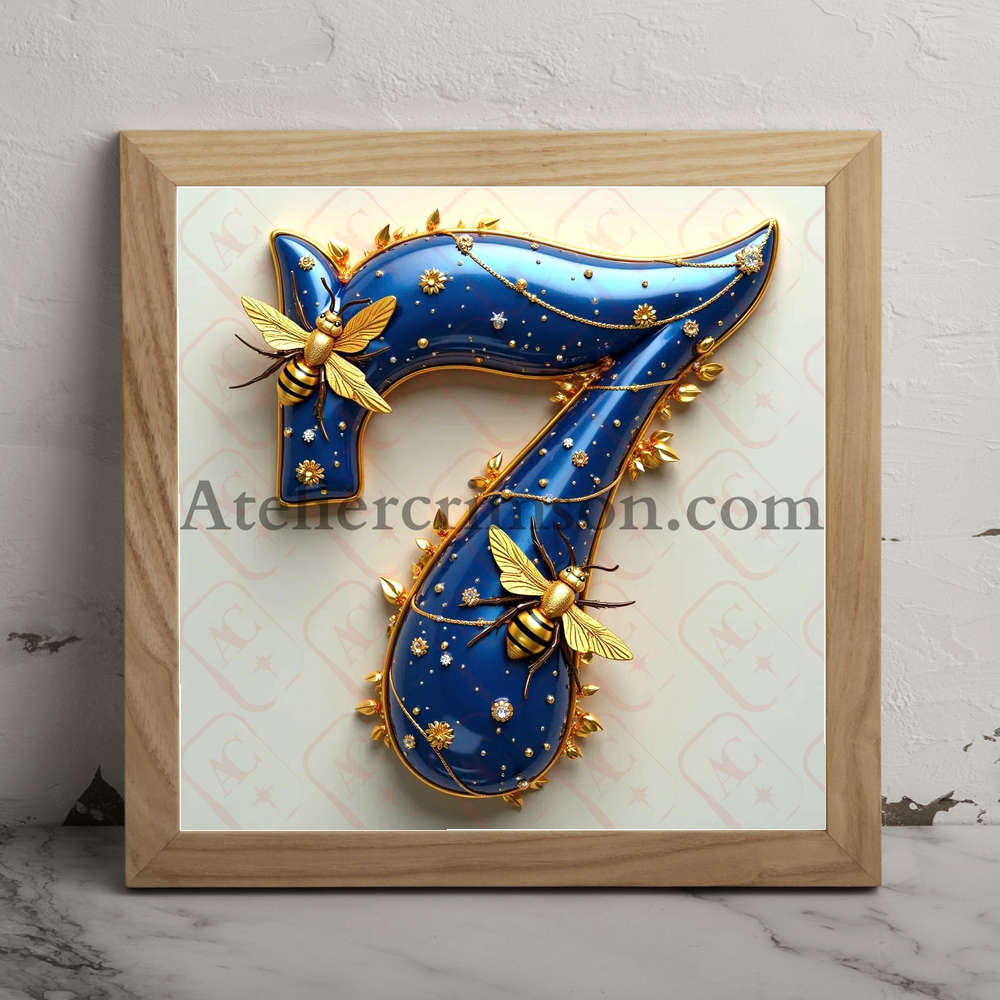 Number 7 royal blue bees Download Now this high quality AI-generated image, perfect for adding a touch of tranquility and creativity to any space.