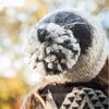 - Hat: 16 (17 ¾, 19 ½, 21 ¼)“ / 40 (42.5, 47.5, 52.5) cm circumference x 6 ¾ (7, 7 ¼, 8 ¼)” / 15 (17.5, 17.5, 20) cm depth (not including pompom)