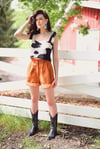Who here is ready to be milked? Fulfill your dreams of being a cow with this intarsia cow print tank top. Knit flat with a colorwork front and a solid back, this tank is your perfect introduction to intarsia! Its time to throw a bow on Bessie Mae and have a cute cow day! Keep an eye out for more pieces from The Cowllection.
