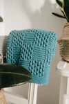 The pattern can be knit in any weight of yarn, and you may cast on a different number of repeats for a smaller or larger finished blanket.