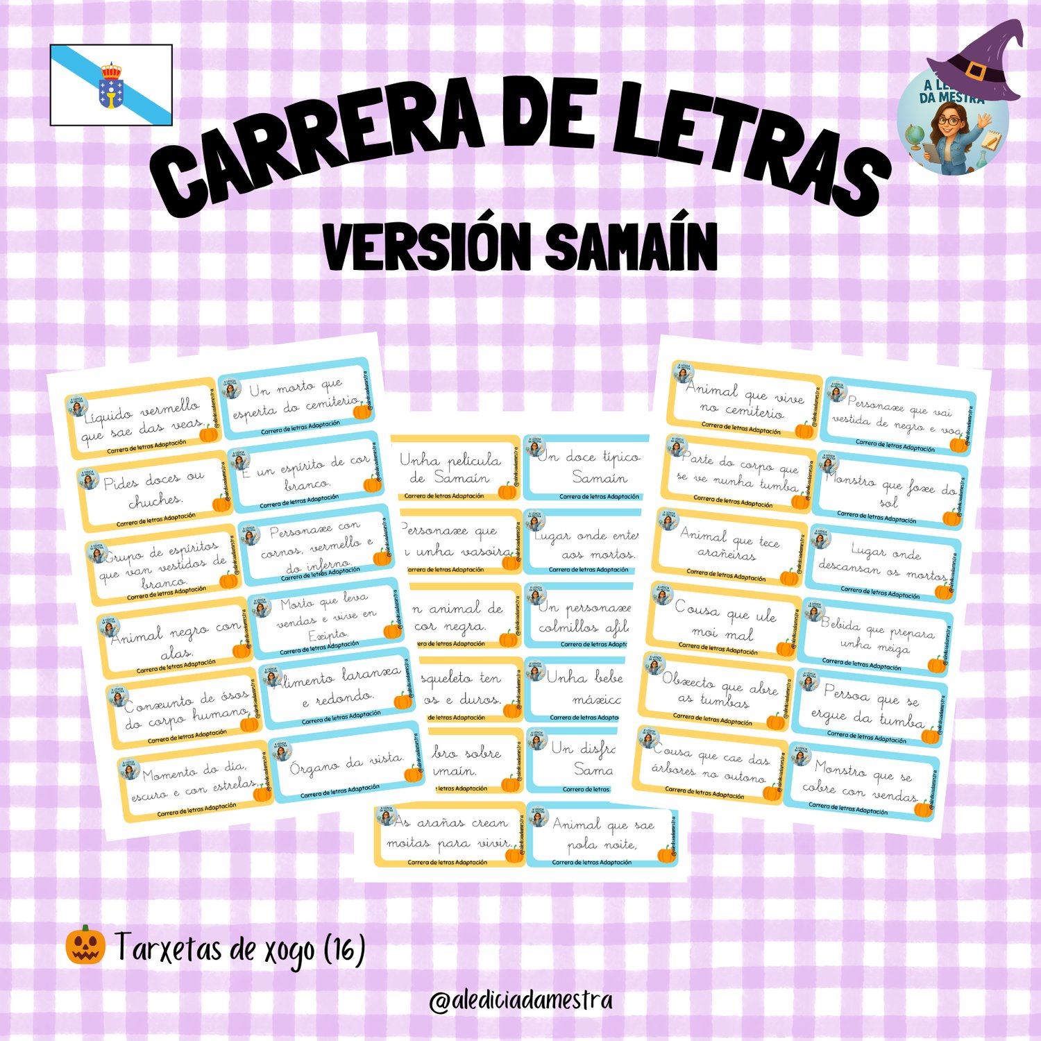 Aquí tienes las tarjetas edición Samaín del juego: Carrera de Letras.👻🕷️