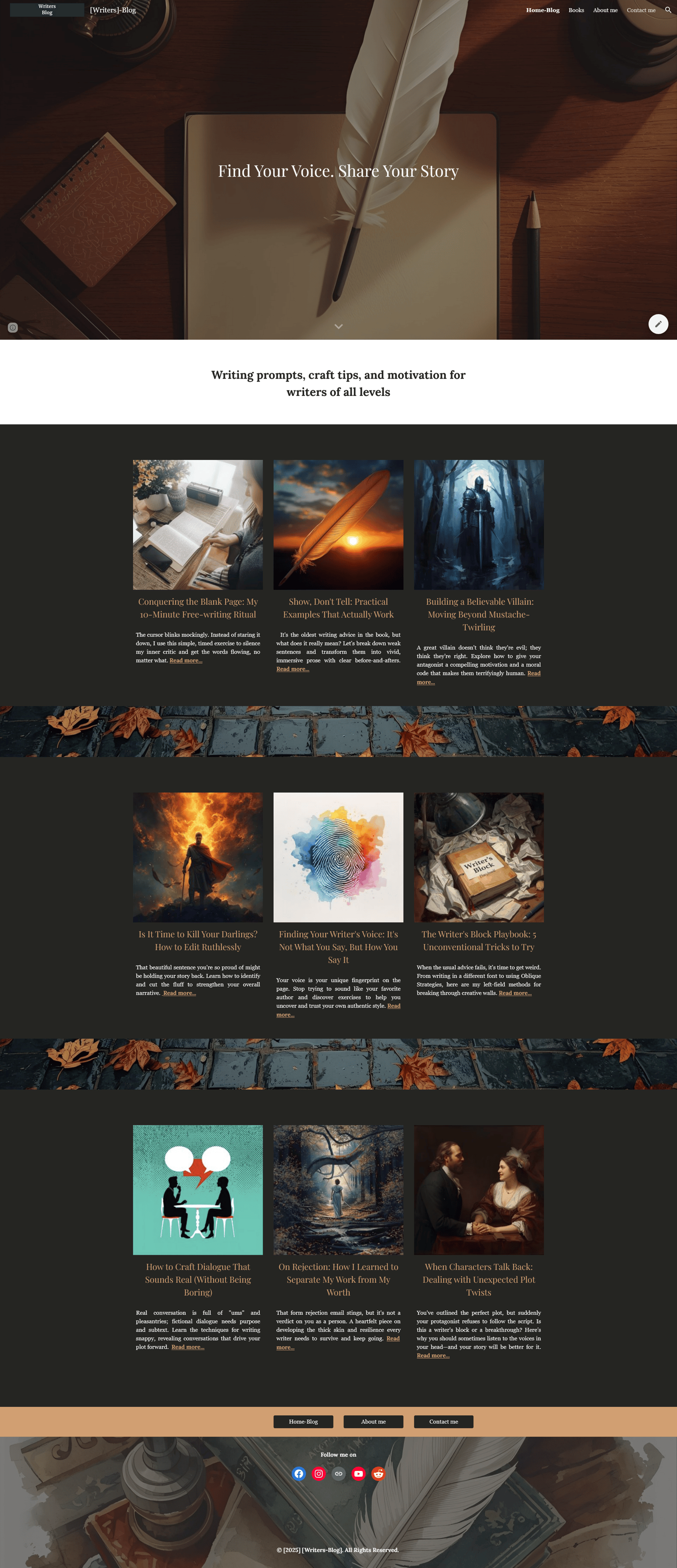 A clean, professional template for writers to showcase their work, build an author platform, and connect with readers. Perfect for authors, journalists, and freelancers.