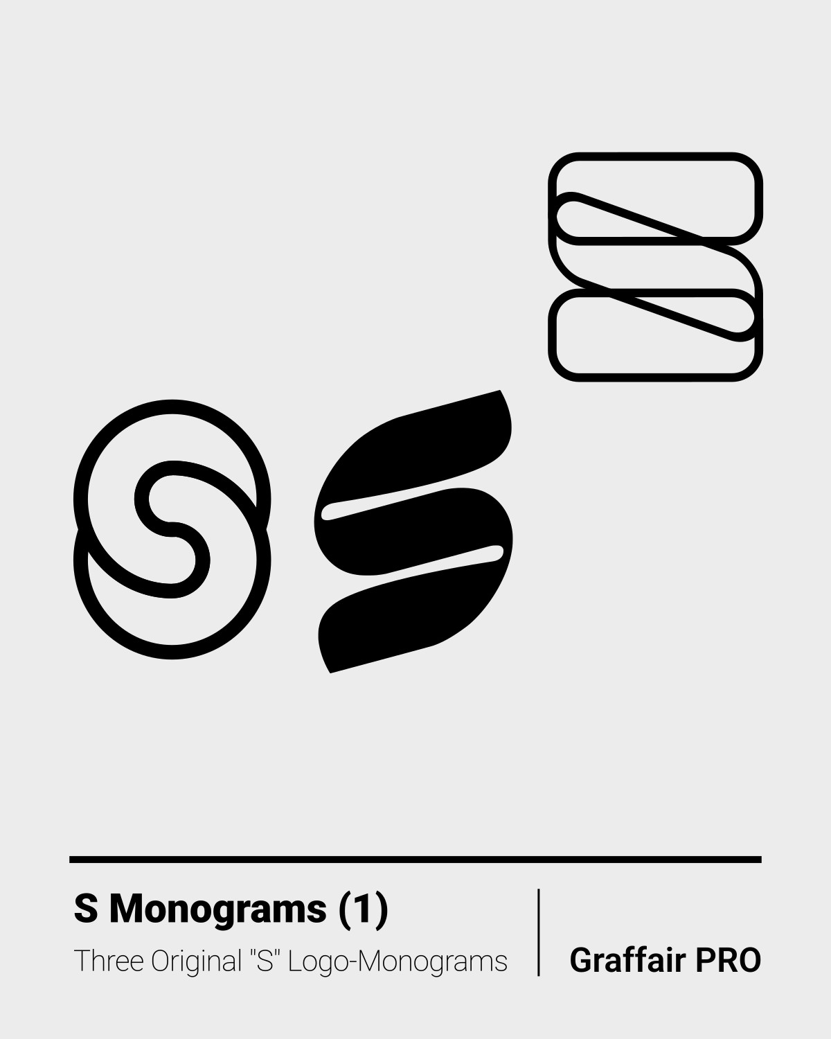 S Monograms (1): The 1st set of three original "S" logo monograms, included in the "1050 SVG Monograms" super bundle, which also features an Index catalog.