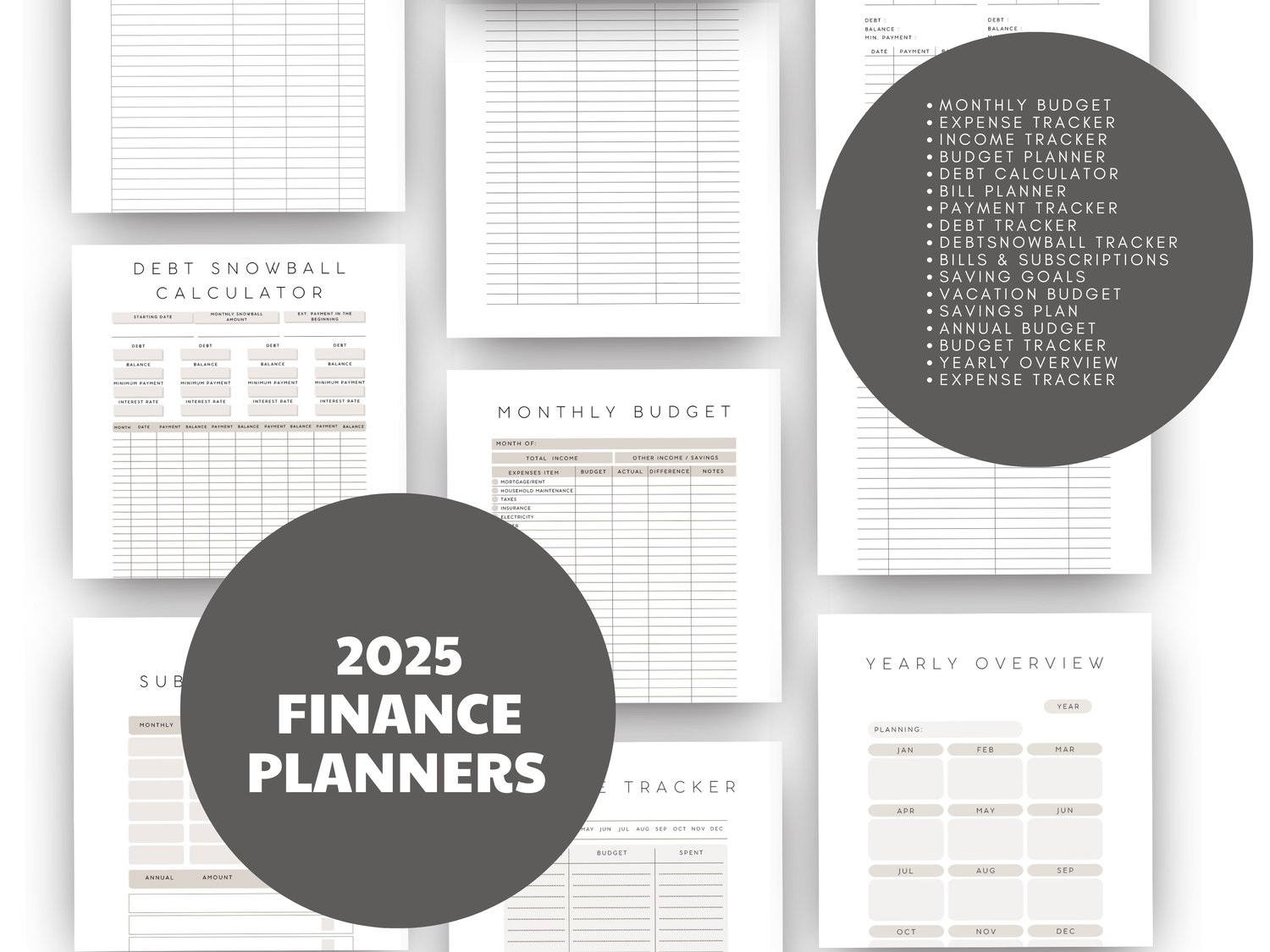 Meet your 2025 money command center. The FREE 2025 Finance Planner packs 20 pages to help you plan, track, and glow. Budget spreads, cashflow + expense logs, savings challenges, debt payoff trackers, bill calendars, income sheets, goal roadmaps, and clean note pages all styled to look premium and on-brand.