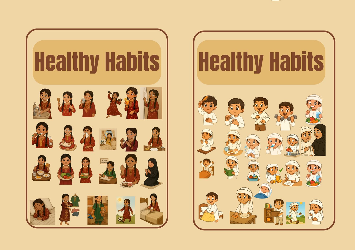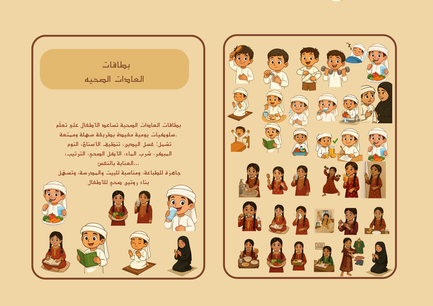 بطاقات العادات الصحية تساعد الأطفال على تعلّم السلوكيات اليومية المفيدة بطريقة بسيطة ولطيفة.