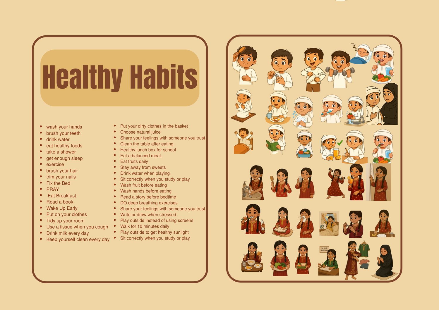بطاقات العادات الصحية للأطفال عربي - English Healthy Habits Cards for Kids**