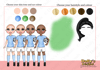 three different skin tones, three eye colours and five hair colours)
