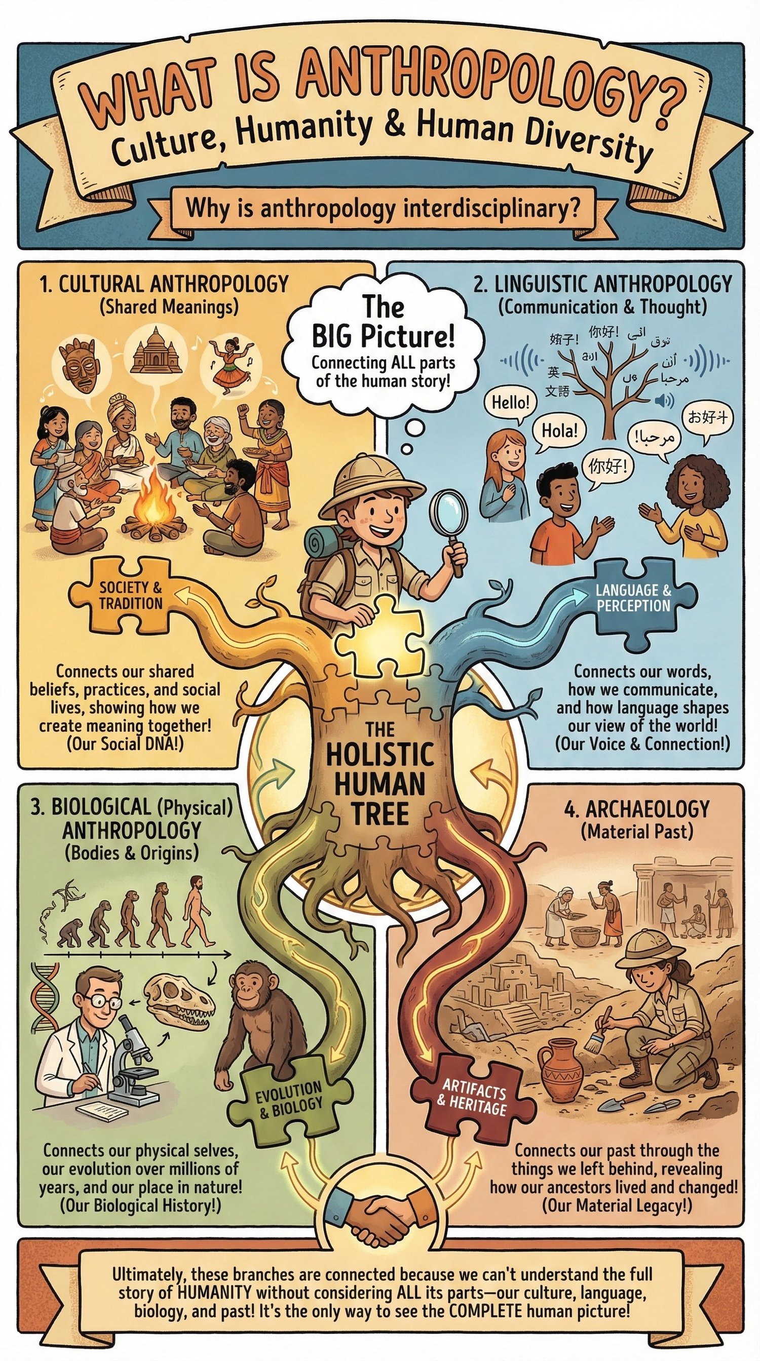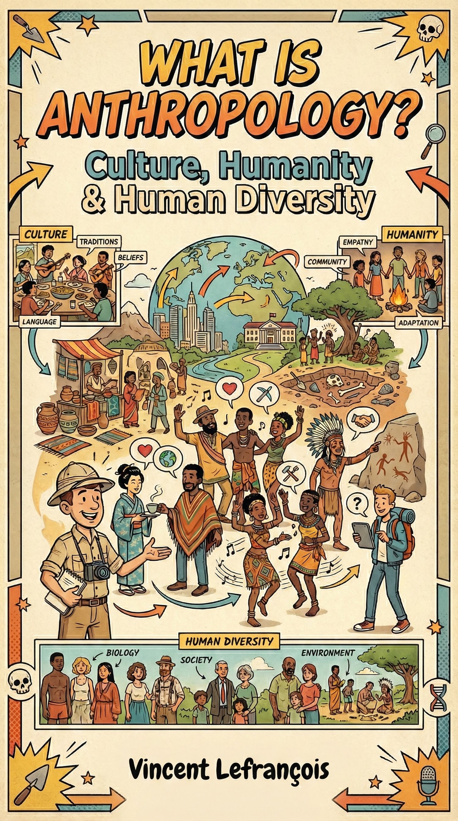 What Is Anthropology? is a comprehensive, beautifully illustrated educational book that explores how humans live, think, evolve, and create cultures across time and space.