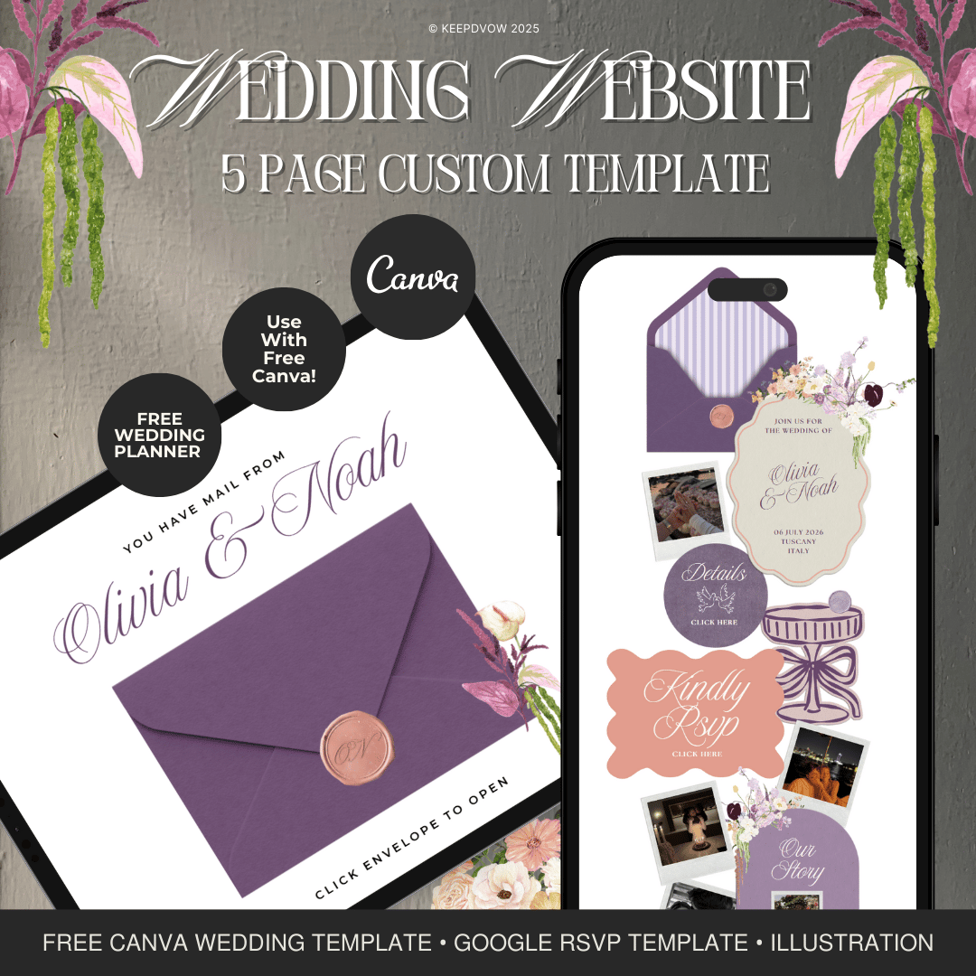Luxury Purple & Peach Wedding Site + FREE Wedding Planner by Keepdvow