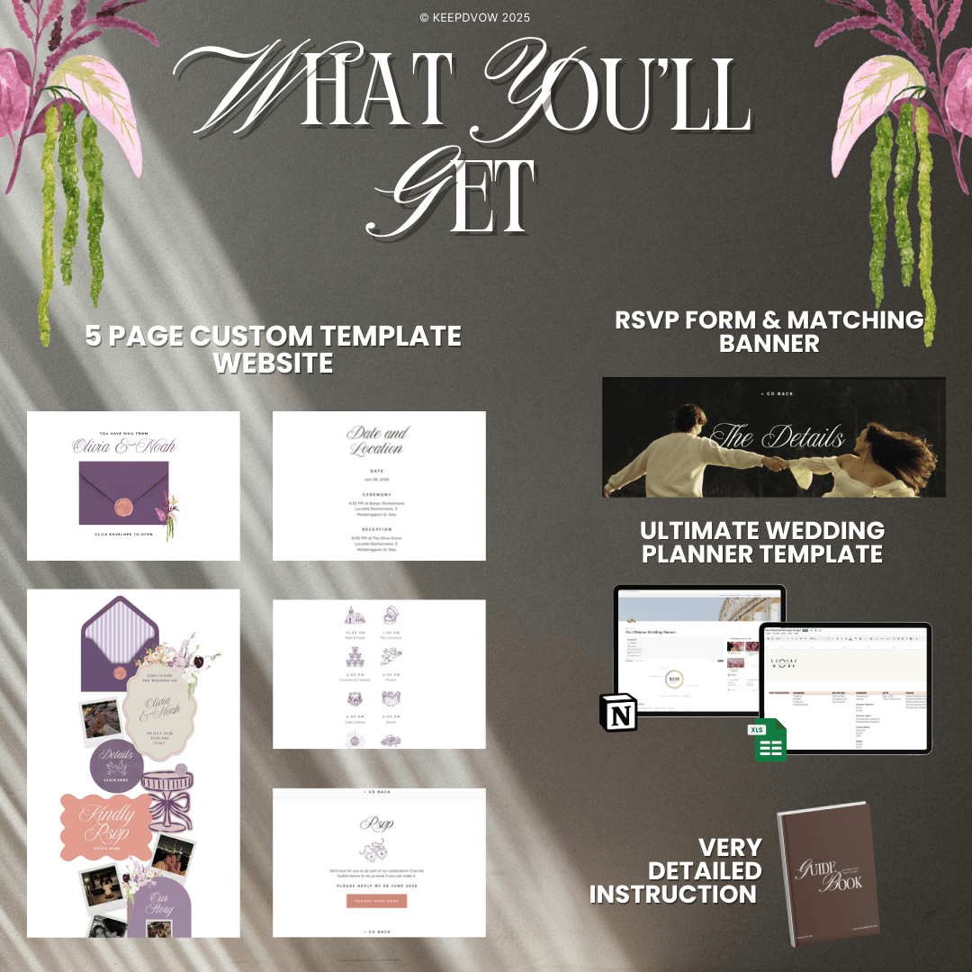 Purchase today and receive our Ultimate Wedding Planner Bundle (Notion & Spreadsheet) completely FREE! Keep your budget, guest list, and to-dos organized in one place.