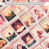 ~ 1. Editable Canva Template with 64 oracle cards with beautiful images (generated using AI) and messages related to manifesting (please see the images for more information).