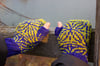 The pattern has 3 sizes and each uses up to 50g in each of two colors.