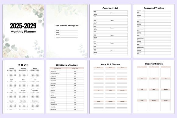Editable 5-Year Monthly Planner (2025-2029) Canva Interior