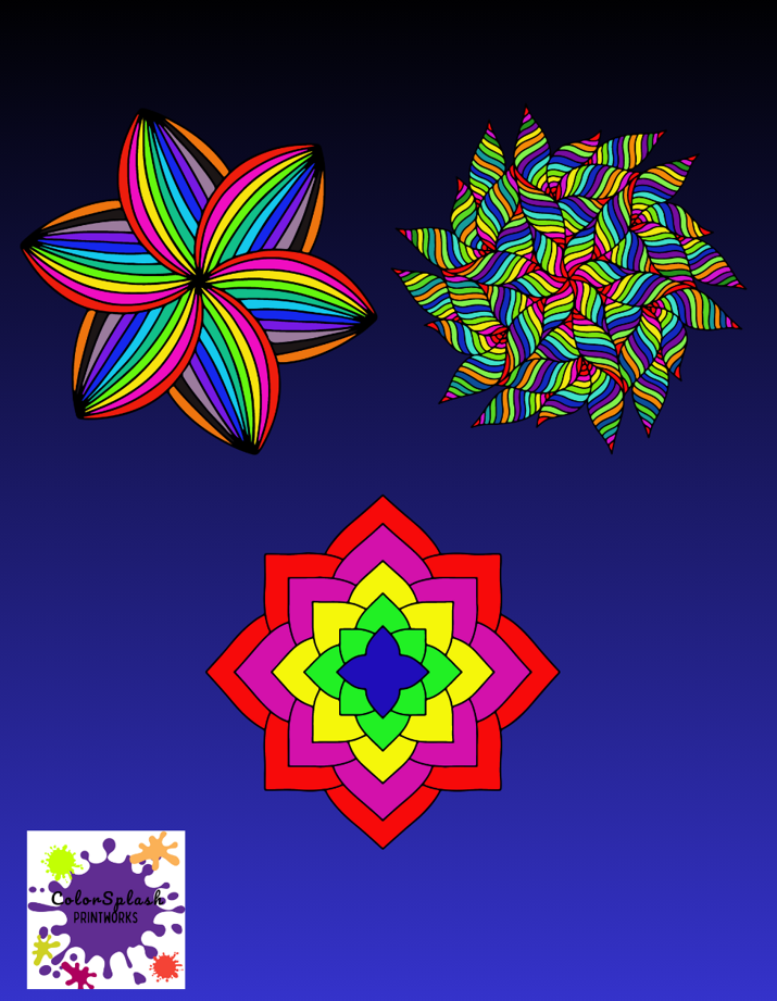 - 48 different black and white mandala patterns in each book.