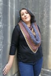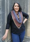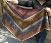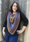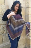 This is a classic triangular shaped shawl, worked in DK weight yarn, and uses Make 1 Right and Make 1 Left at the spine and each end in order to increase and build the shape. The 4 colors worked are shown both in combinations and alone, in a rich canvas full of texture and interest, creating a generous cozy warm shawl.