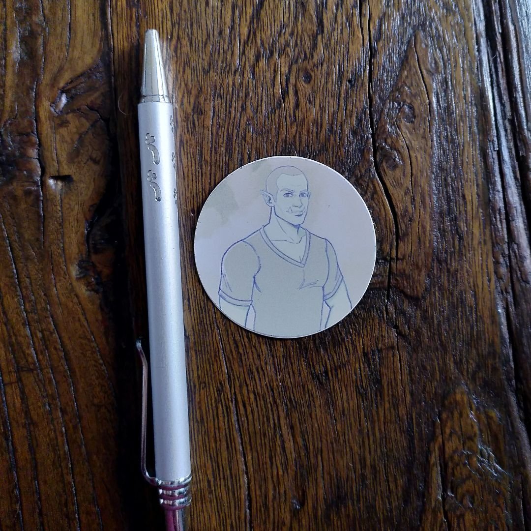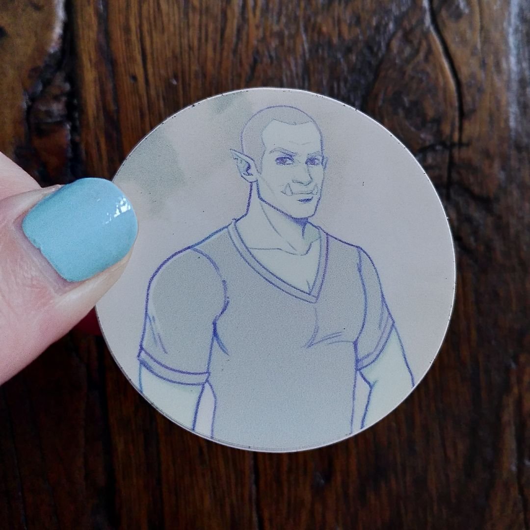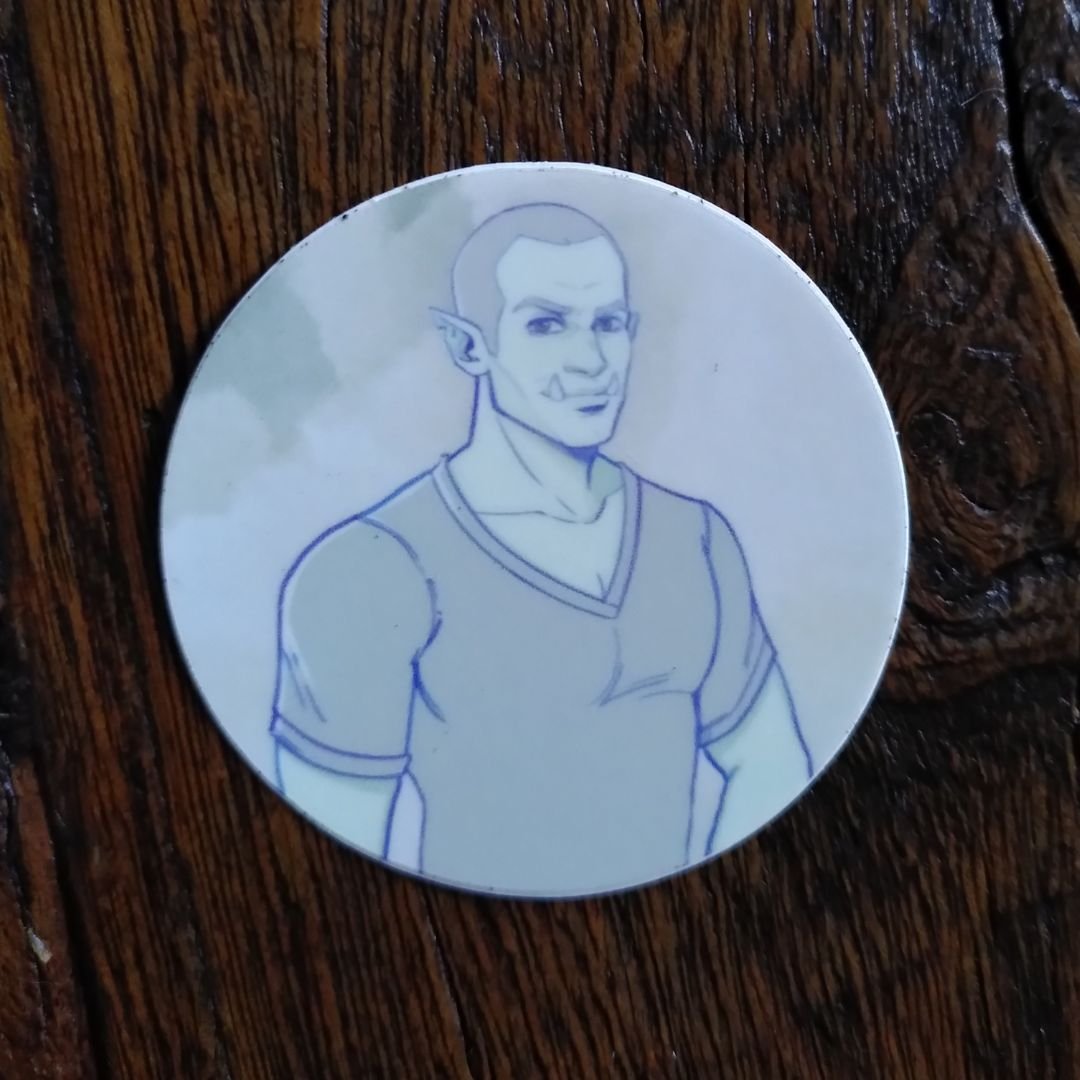 Round Vinyl Sticker of Gunnar the Orc from My Orc Mate by Lilith Leana.