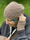 Pretty cables and textures adorn this beautiful hat and fingerless mitten set. Knitted in luxuriously soft Whitfell DK they make the perfect accessories to keep you toasty and warm on cold and frosty days.