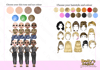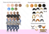 three different skin tones, three eye colours and 15 hair colours for women, 5 for men )